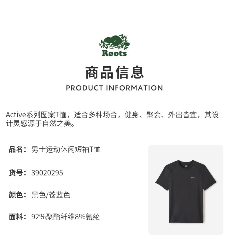 【2件9折】【ROOTS】男式运动休闲短袖T恤