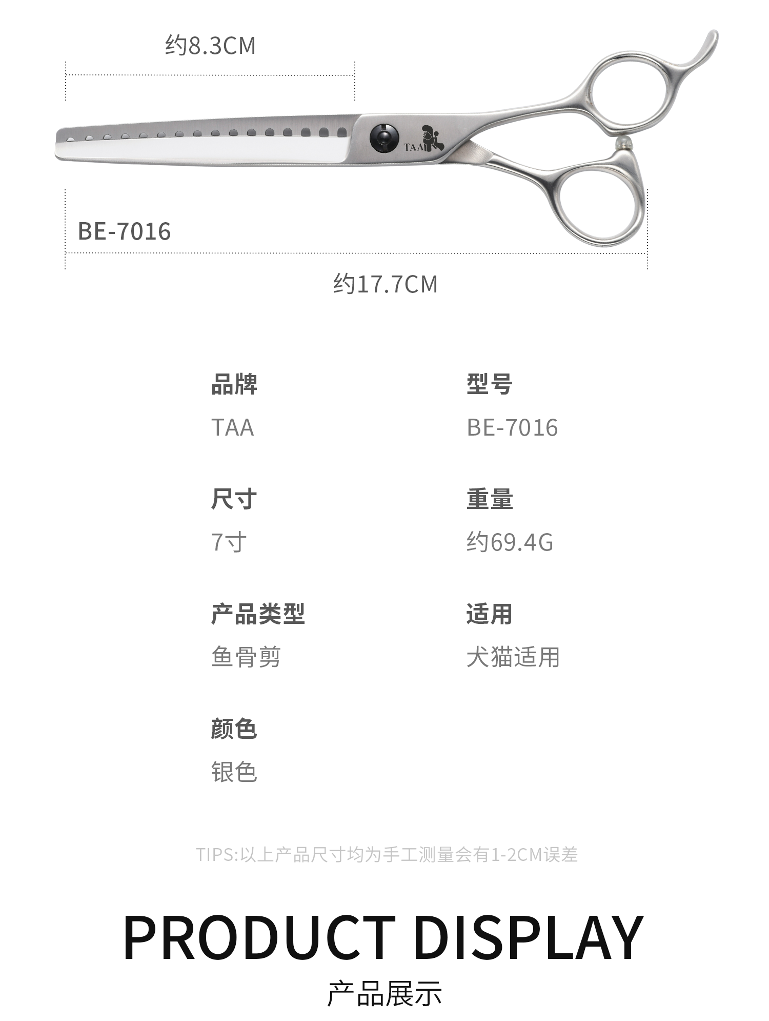 TAA它它宠物美容7寸鱼骨剪BE-7016猫狗通用修毛剪刀