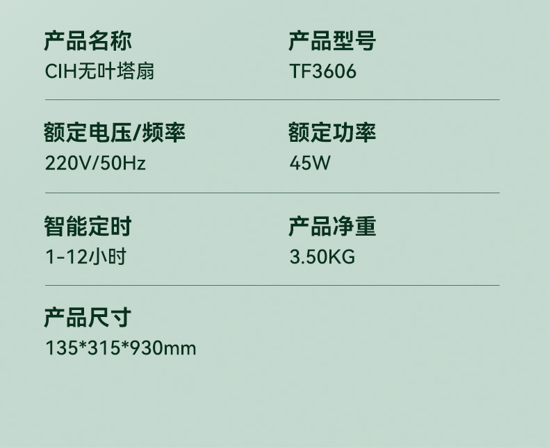 CIH塔扇电风扇3606 触屏控制遥控器控制
