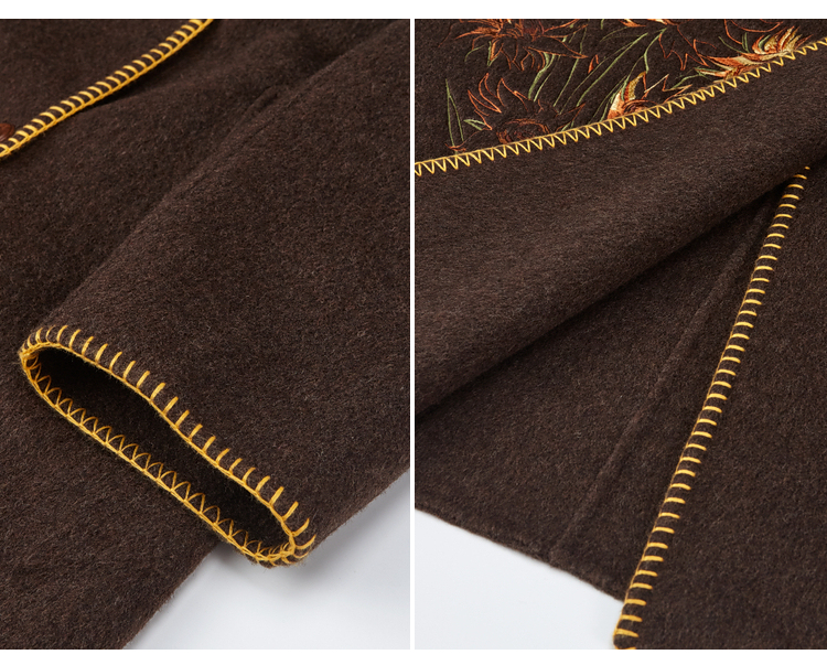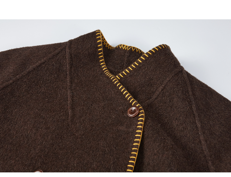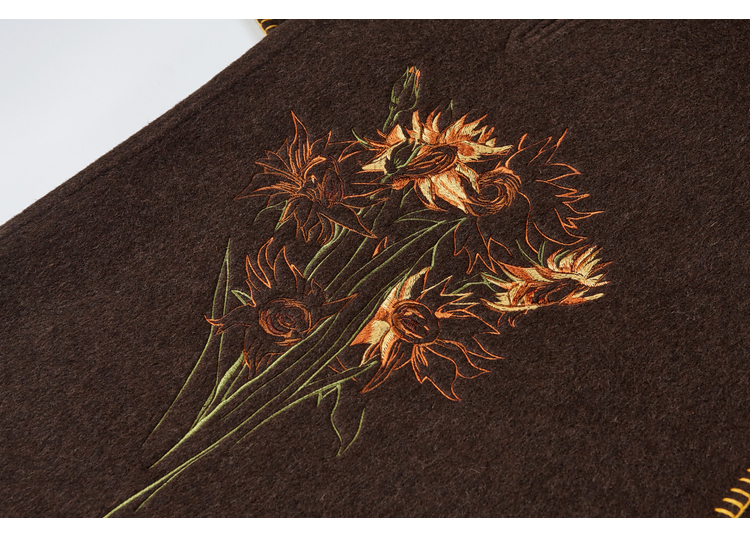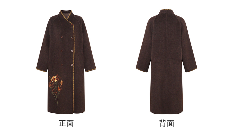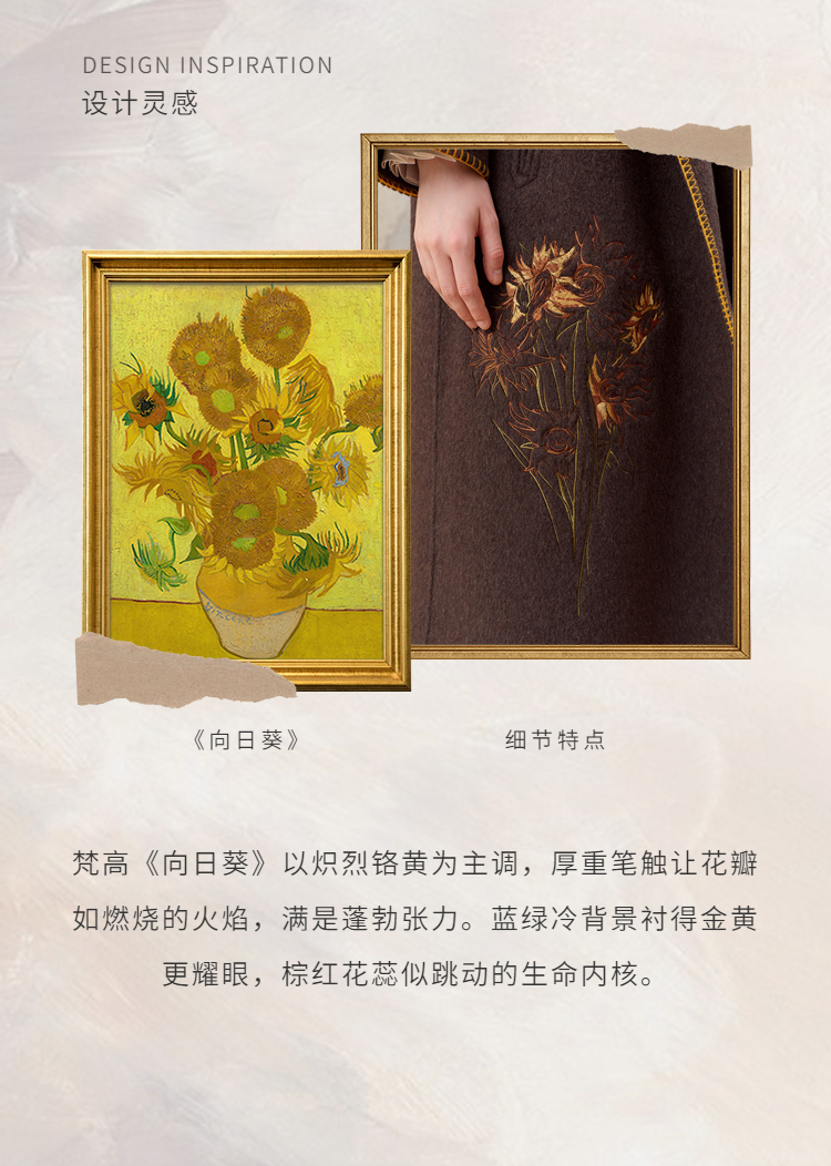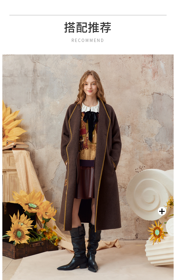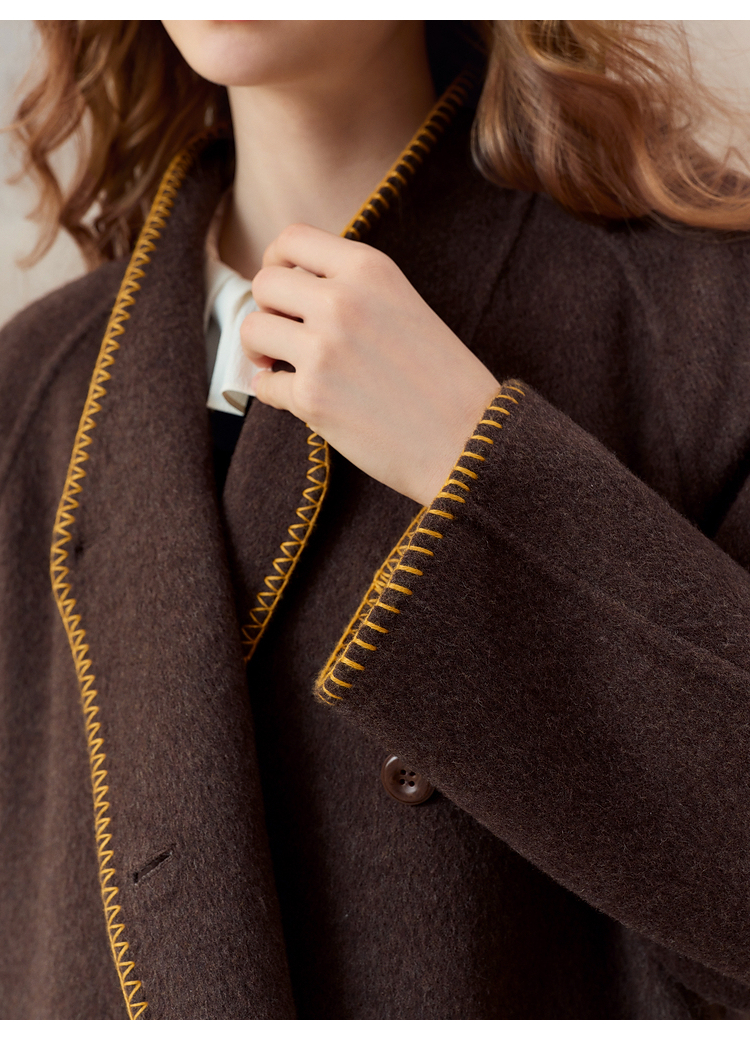 【暖冬内购】两三事梵高文艺原野焦糖2025秋冬新款绣花双排扣羊毛呢外套女宽松