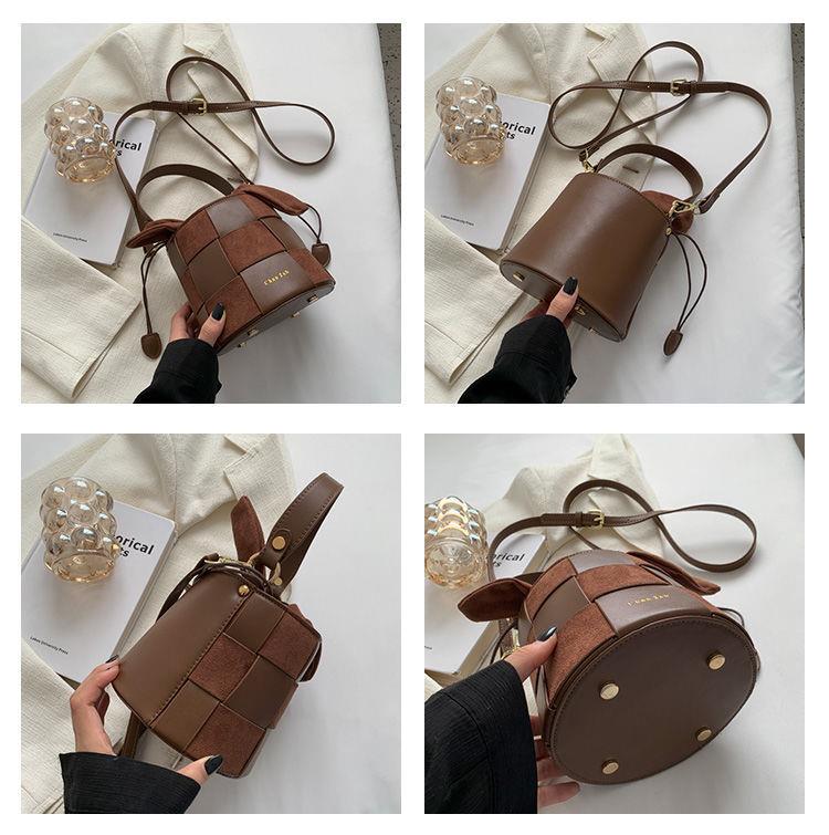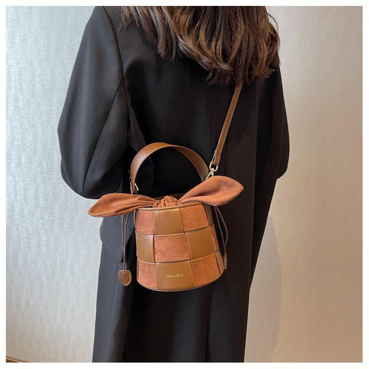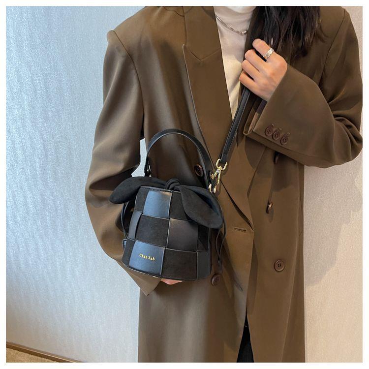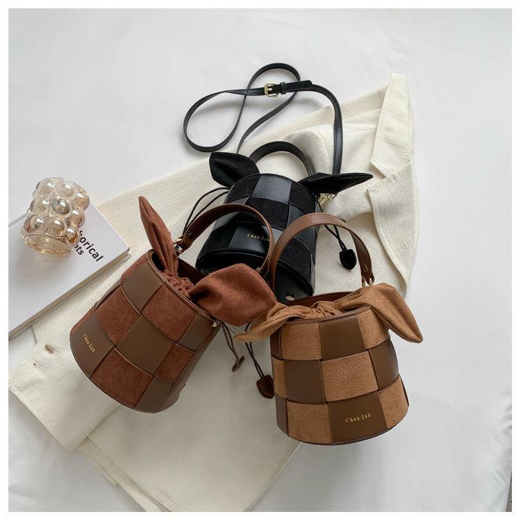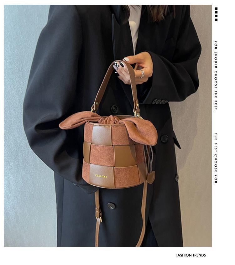【可可爱爱!小兔耳朵水桶包!】兔耳朵水桶包包!复古小众设计!可爱编织包!网红斜挎包!时尚单品!-XHBB2403