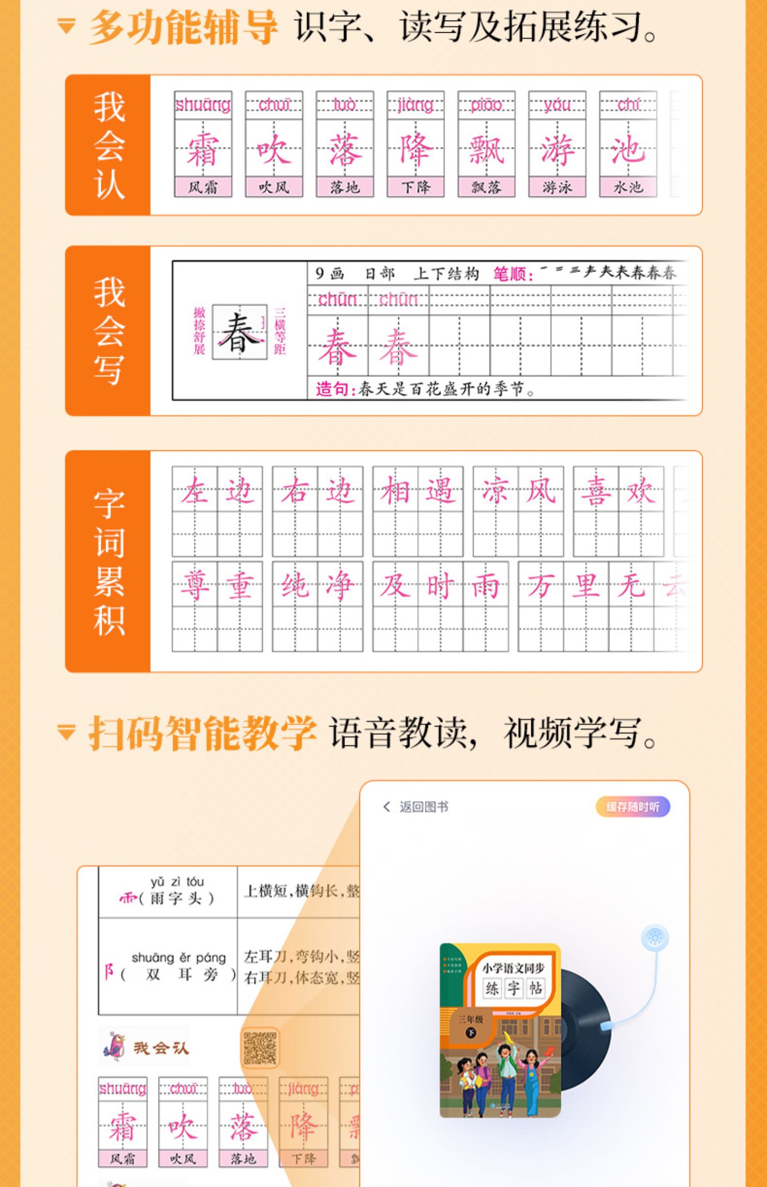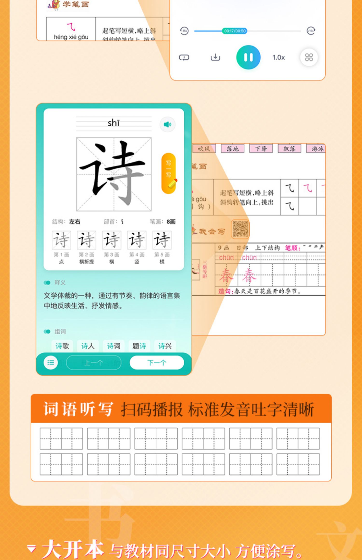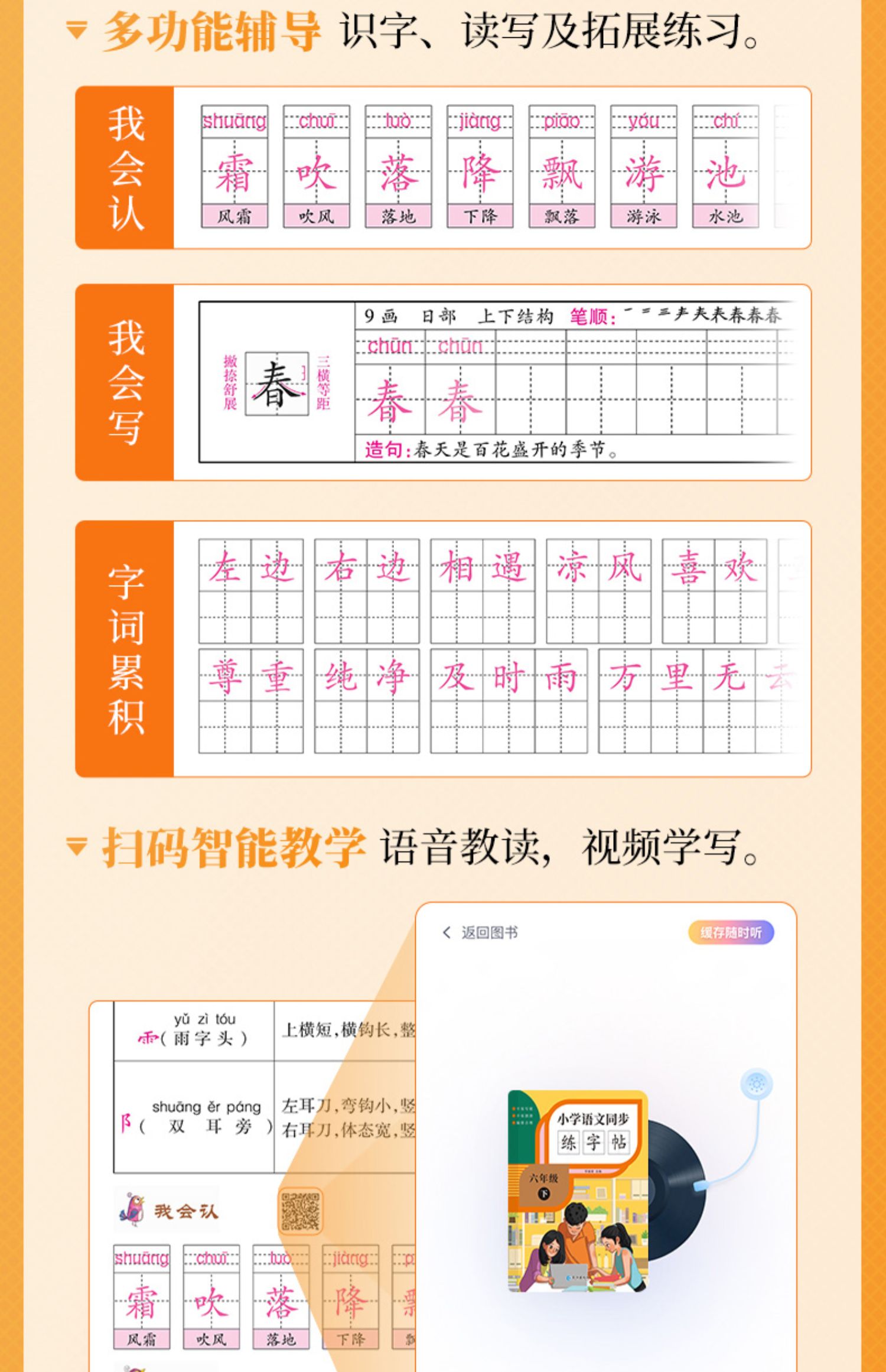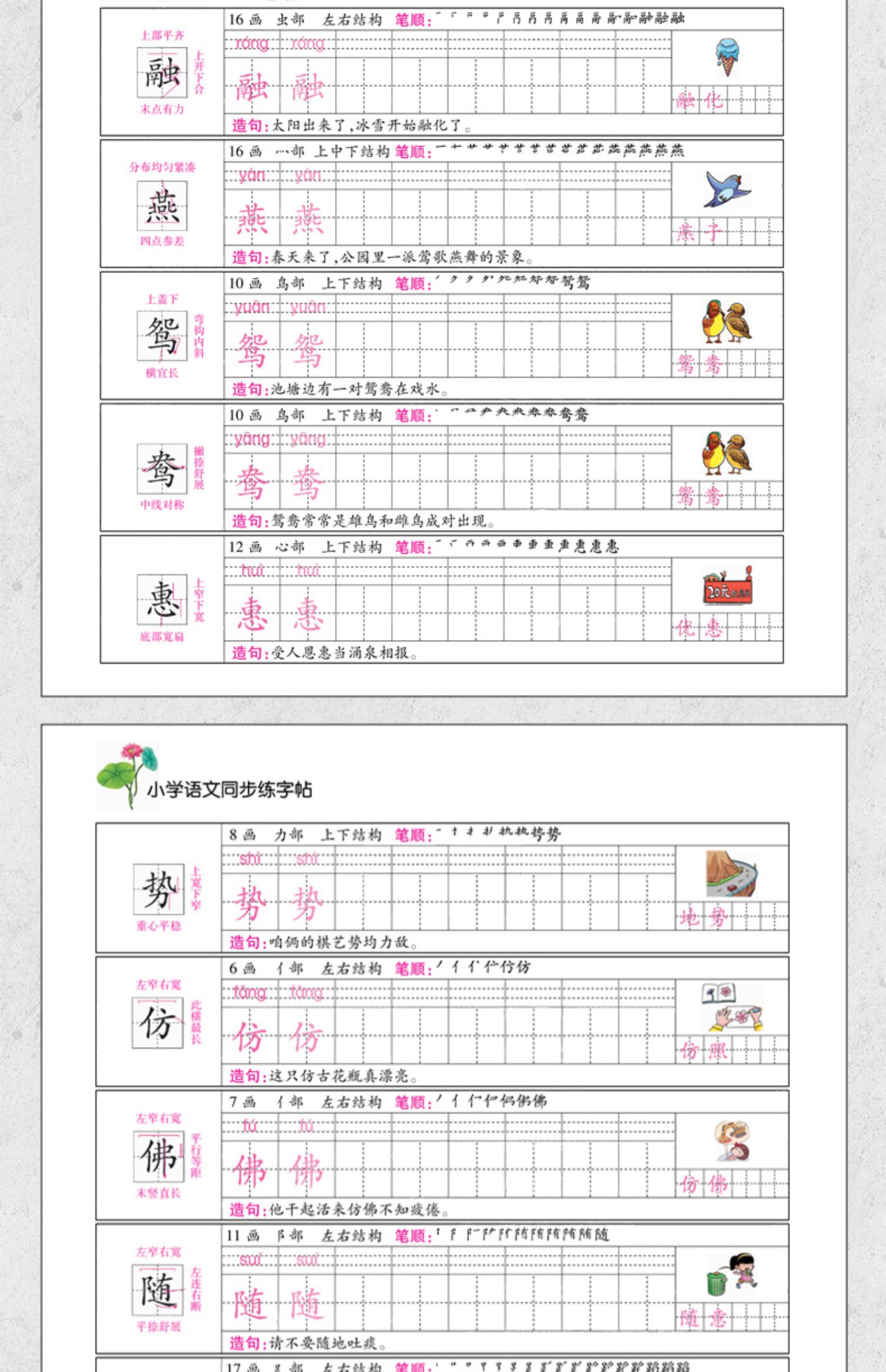 生字练字帖 小学生1-6年级上下册语文 同步生字练字帖 小学生专用正版每日一练描红规范字楷书 写字课课练 手写本 笔顺描红硬笔书法田字格练习本