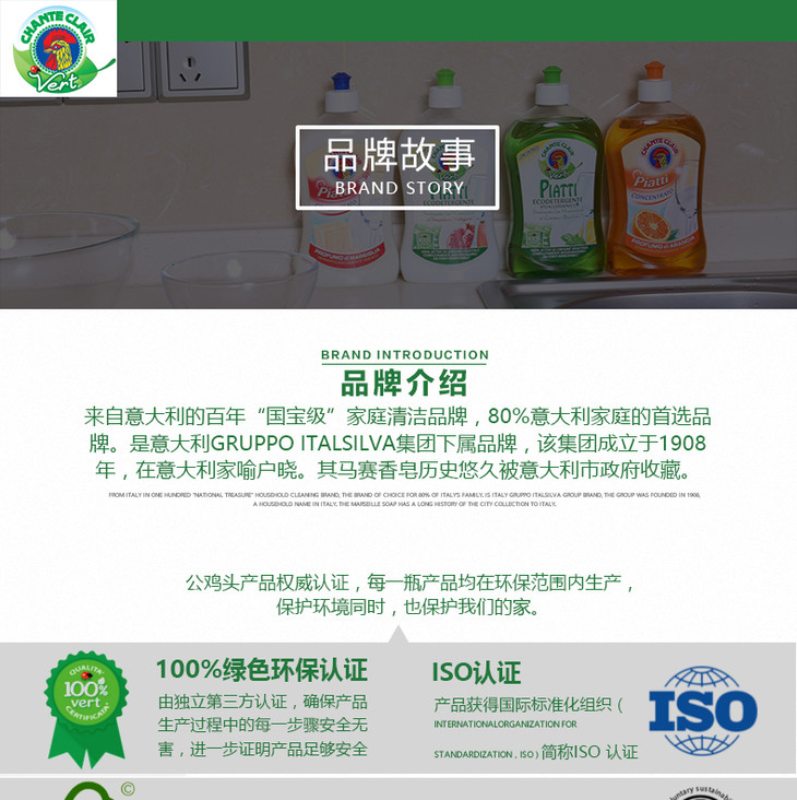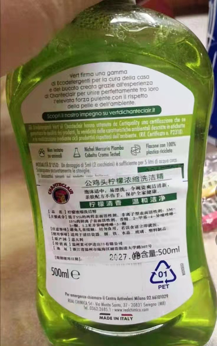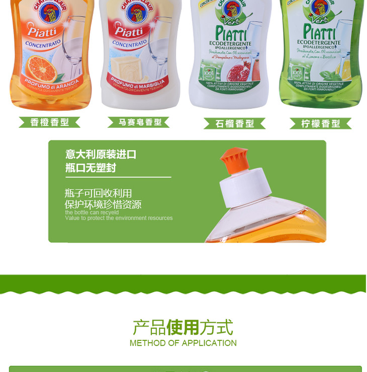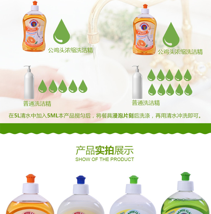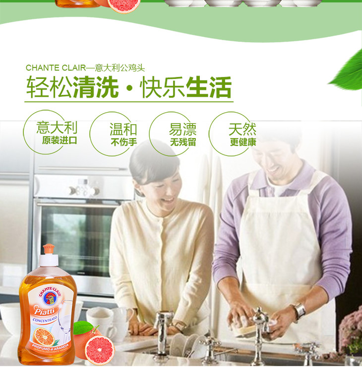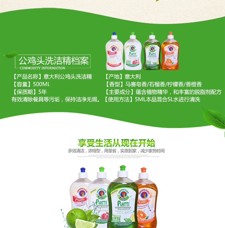 【中欧班列4瓶】 意大利进口大公鸡管家 石榴/柠檬/马赛/香橙味浓缩洗洁精 500ML/瓶
