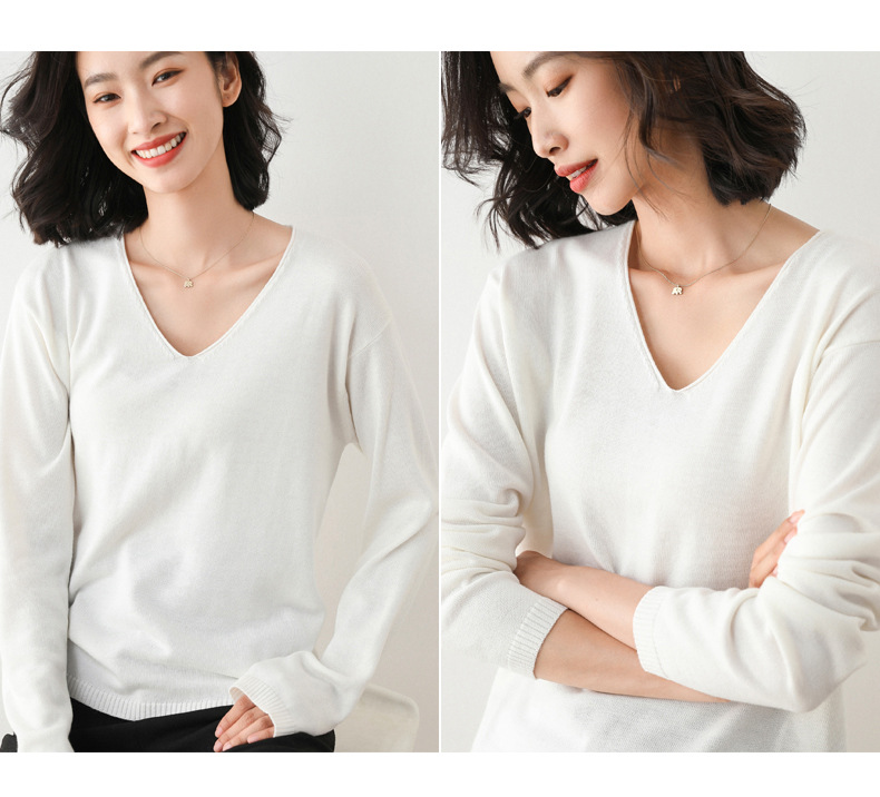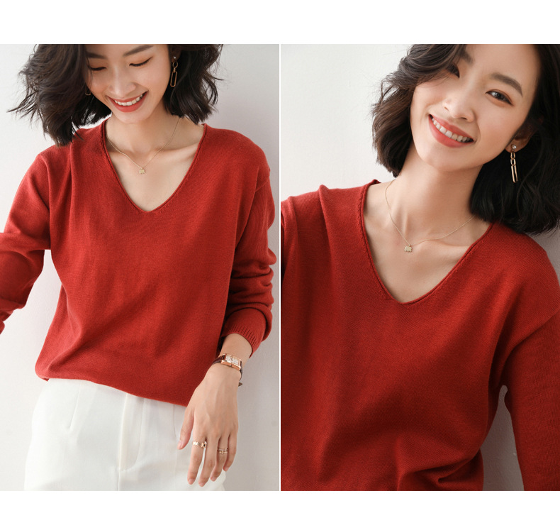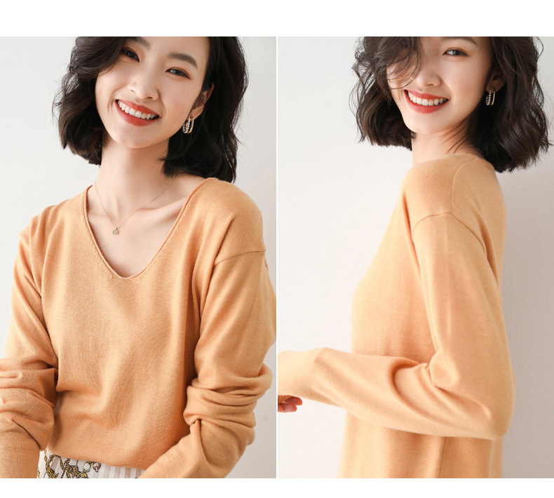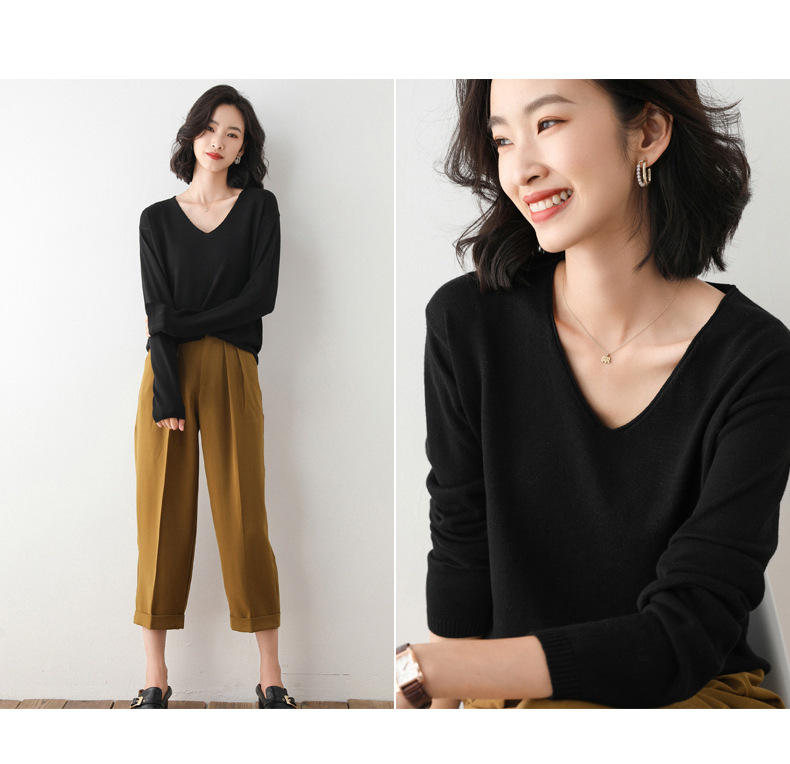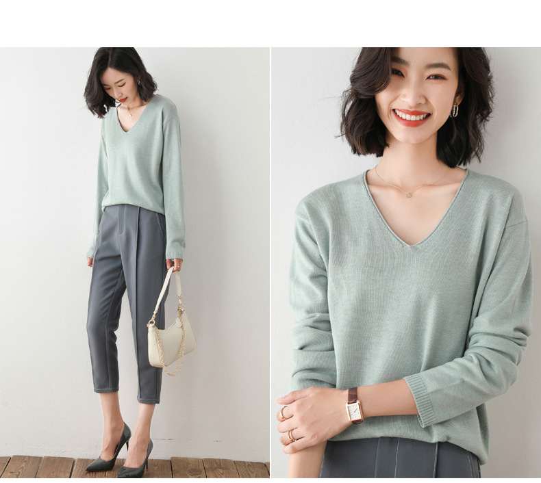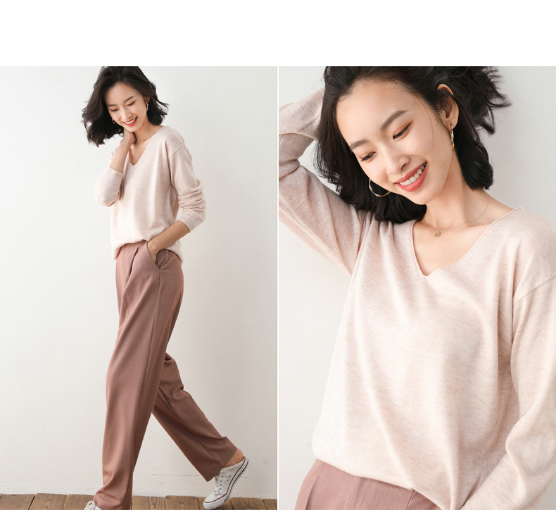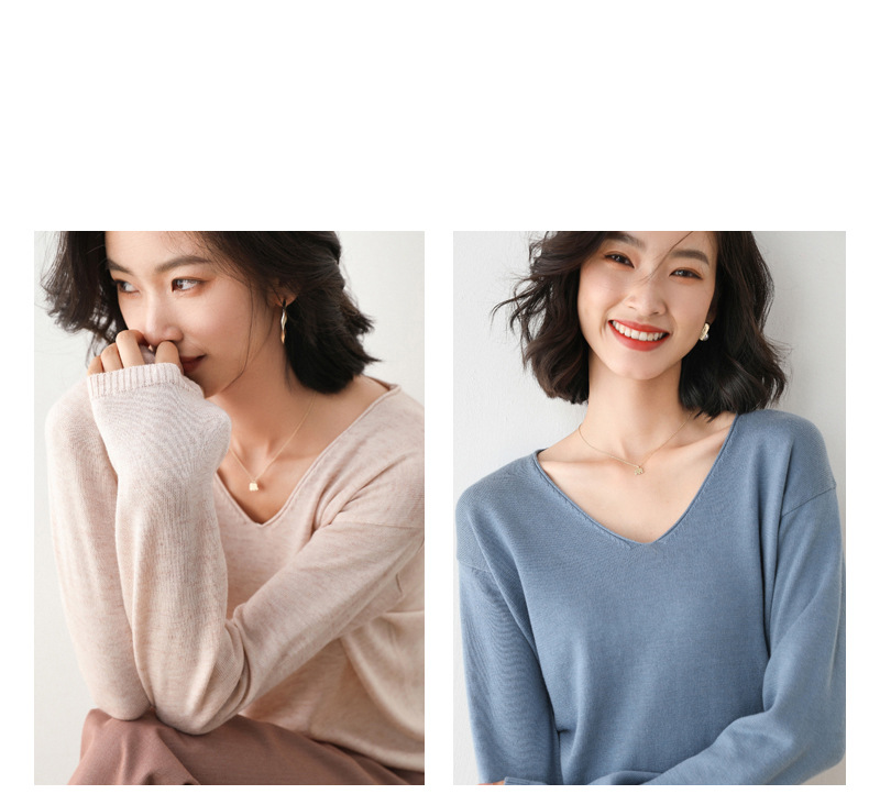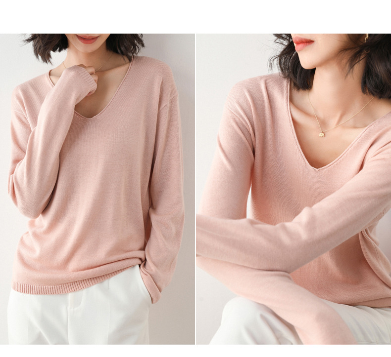 79元到手两件 卷边圆领V领针织衫 早秋新款卷边圆V领 宽松洋气针织衫 减龄显瘦打底衫2025秋季款针织衫女V领低领鸡心领打底毛衣韩版宽松落肩T恤