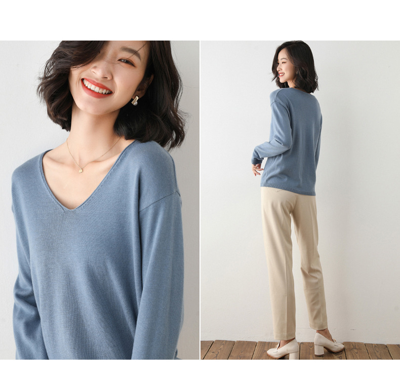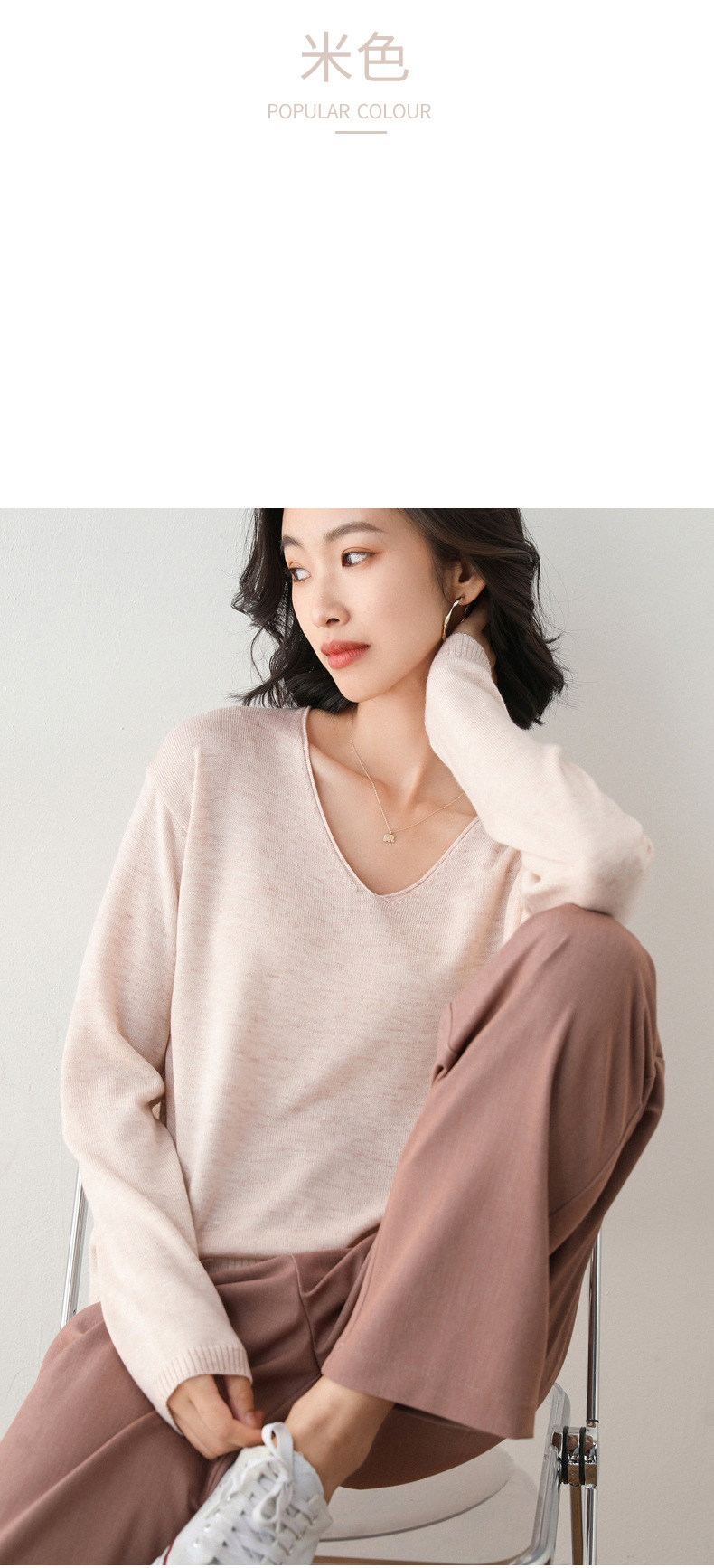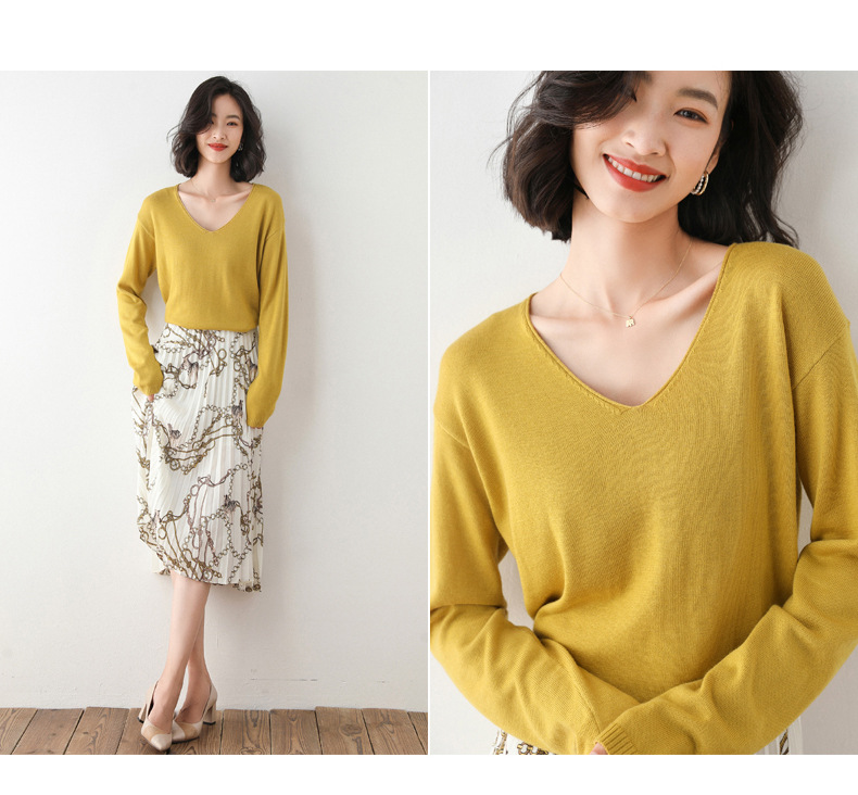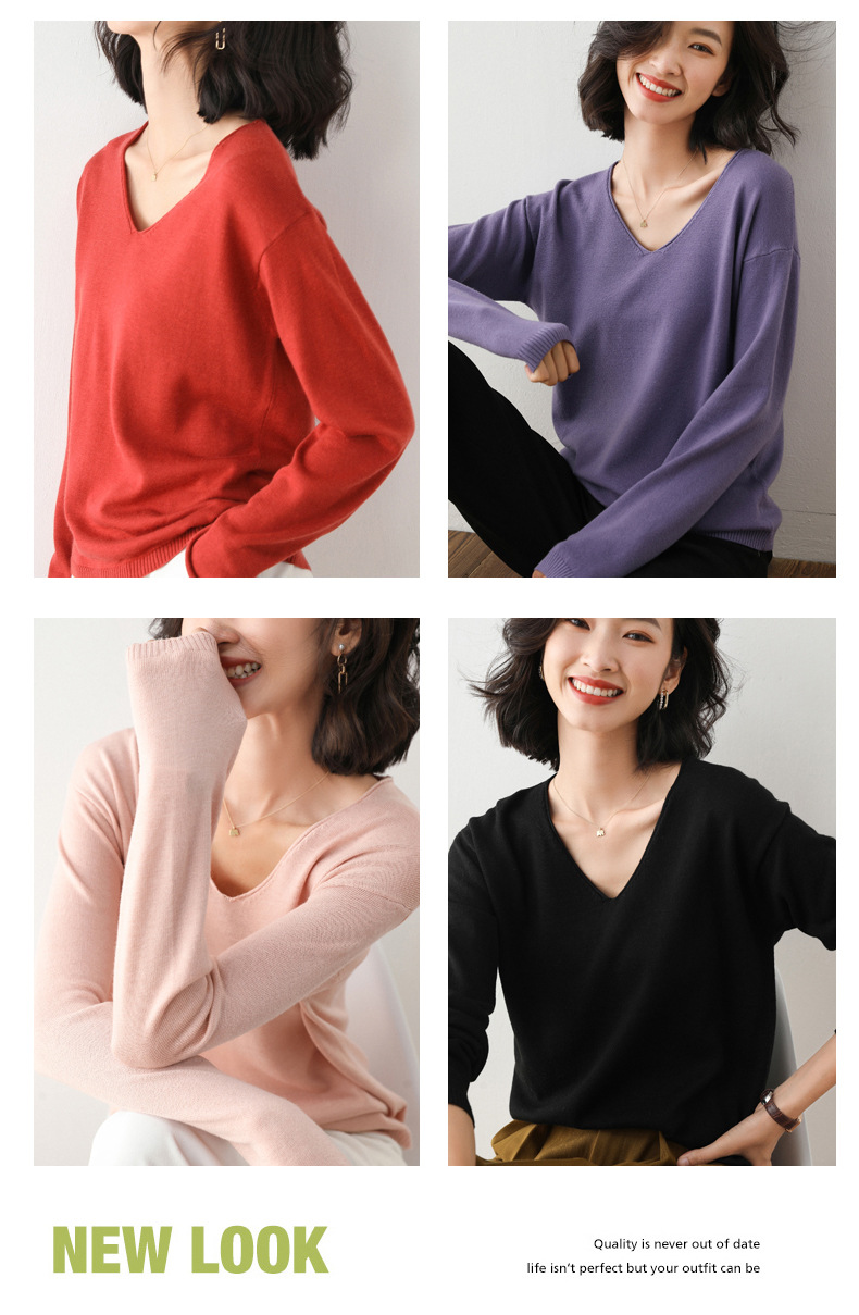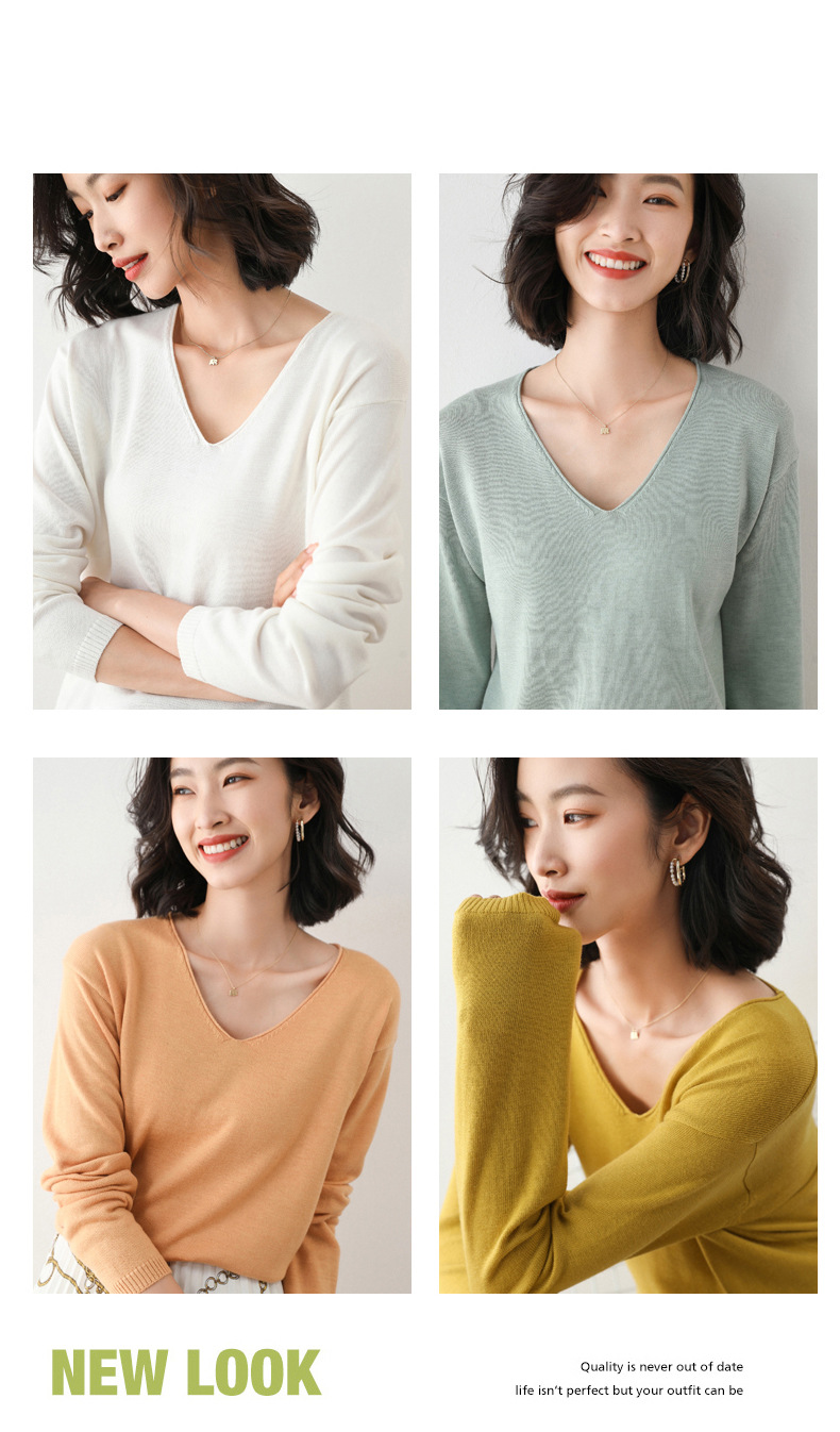 79元到手两件 卷边圆领V领针织衫 早秋新款卷边圆V领 宽松洋气针织衫 减龄显瘦打底衫2025秋季款针织衫女V领低领鸡心领打底毛衣韩版宽松落肩T恤