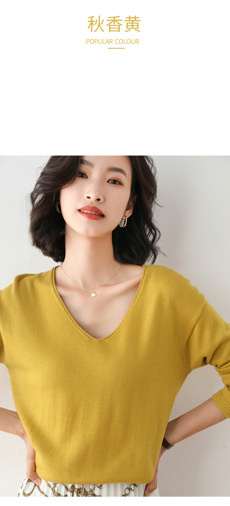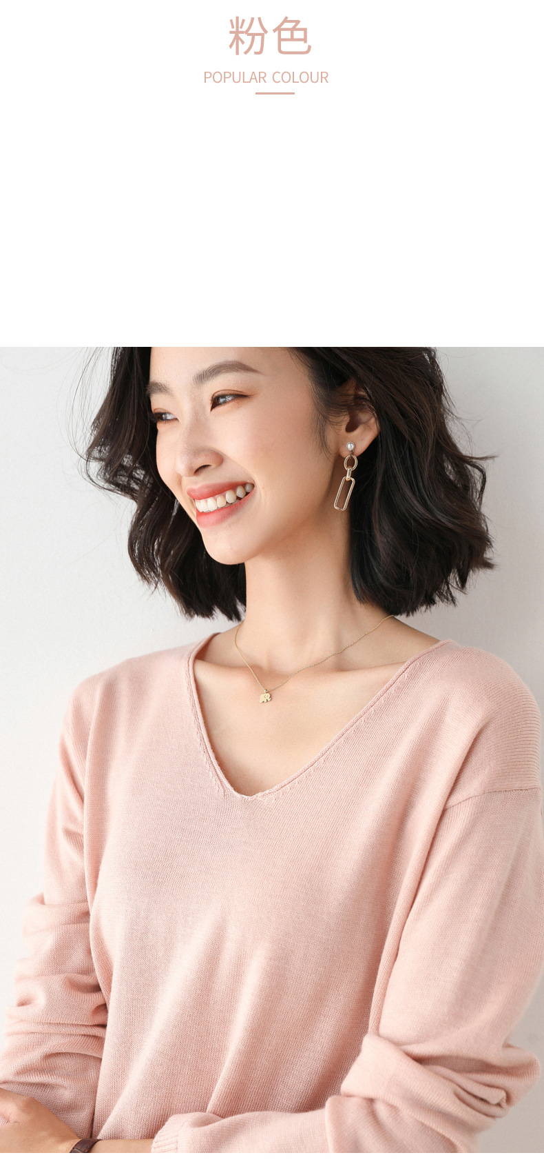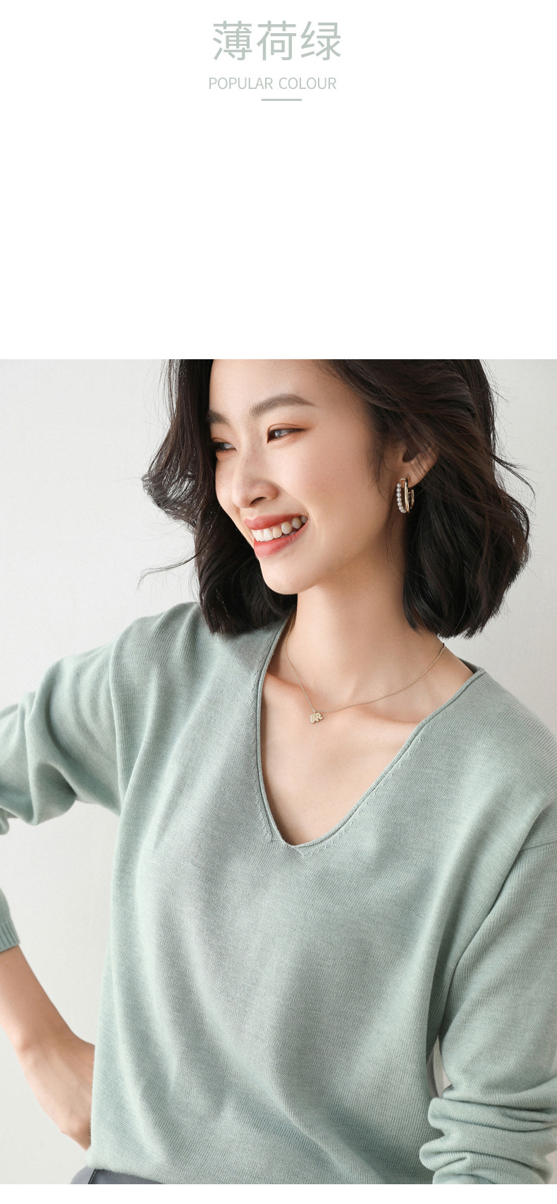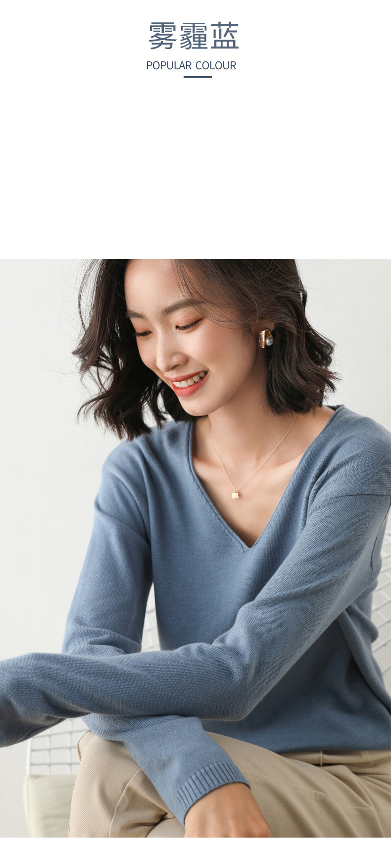 79元到手两件 卷边圆领V领针织衫 早秋新款卷边圆V领 宽松洋气针织衫 减龄显瘦打底衫2025秋季款针织衫女V领低领鸡心领打底毛衣韩版宽松落肩T恤
