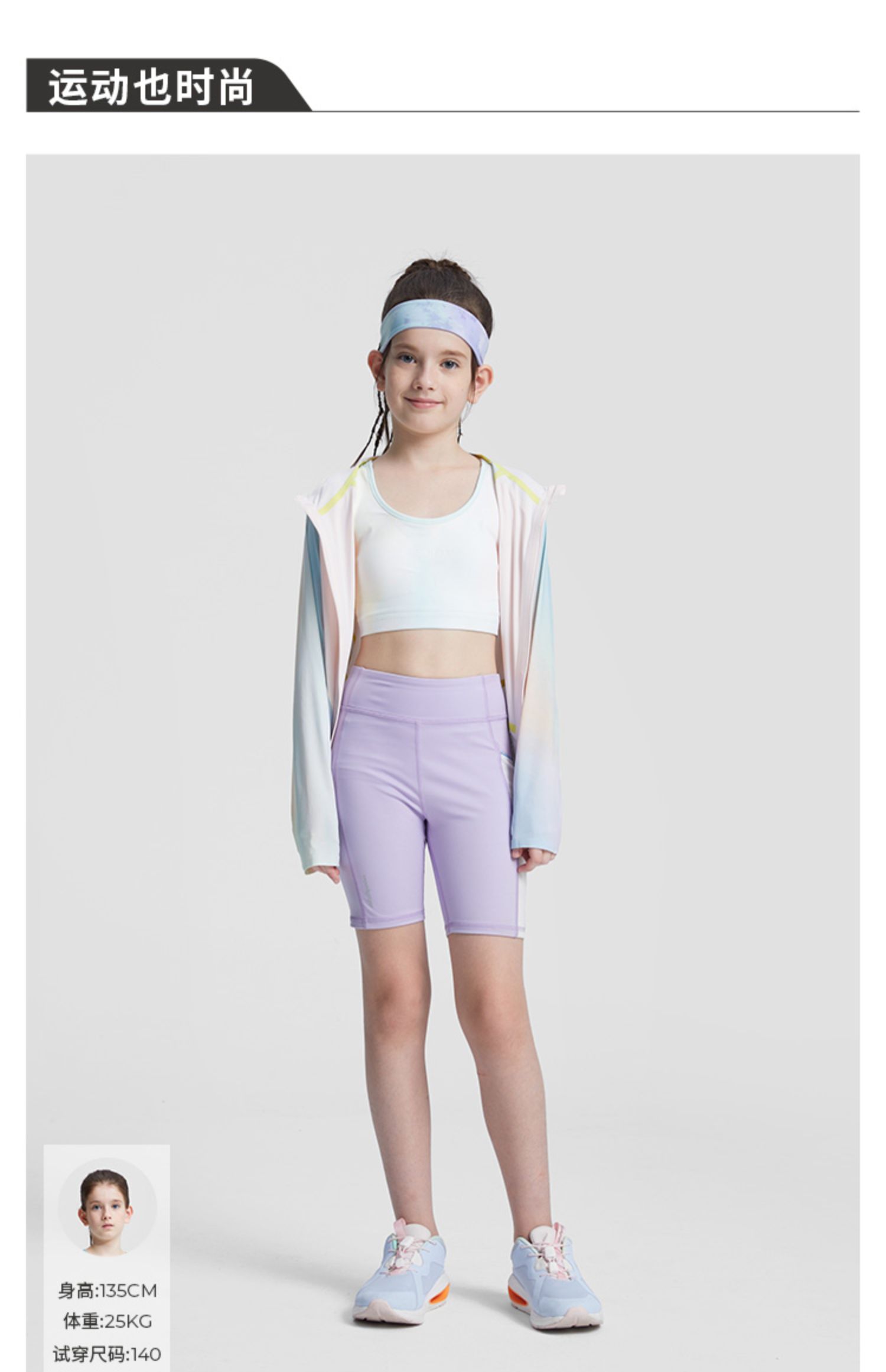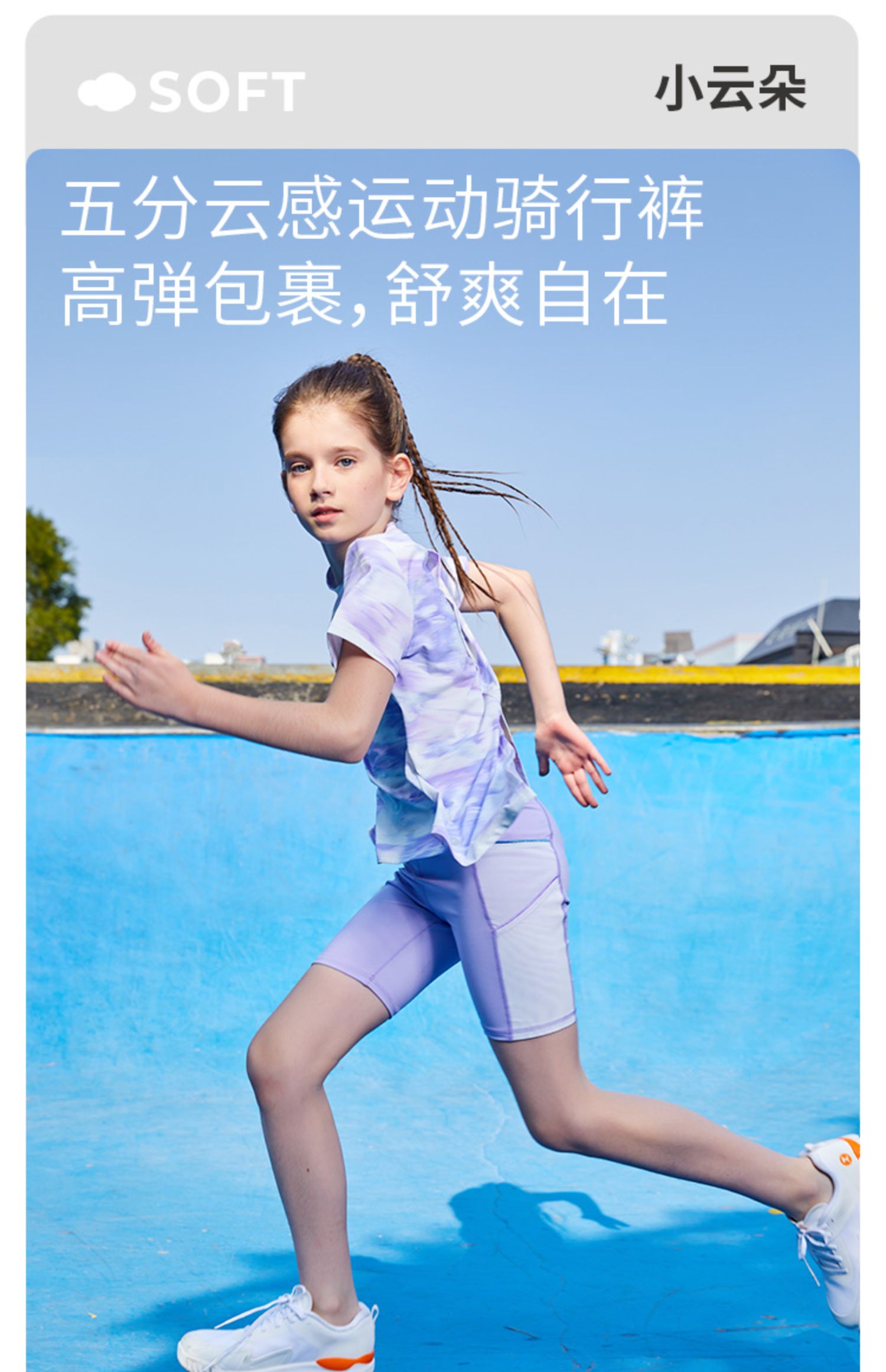 【专属】moodytiger女童裤子2023夏季新款拼接柔软防晒运动五分短裤骑行裤M32211408