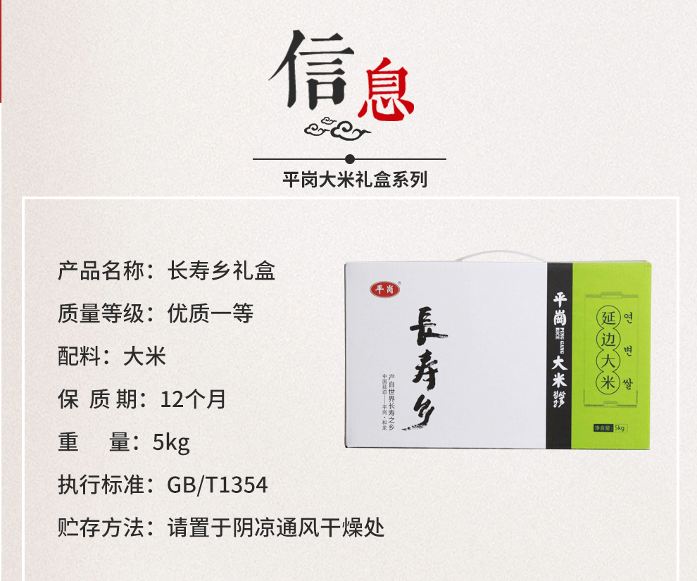 【吉林】平岗大米长寿乡系列礼盒5kg(绿色认证)