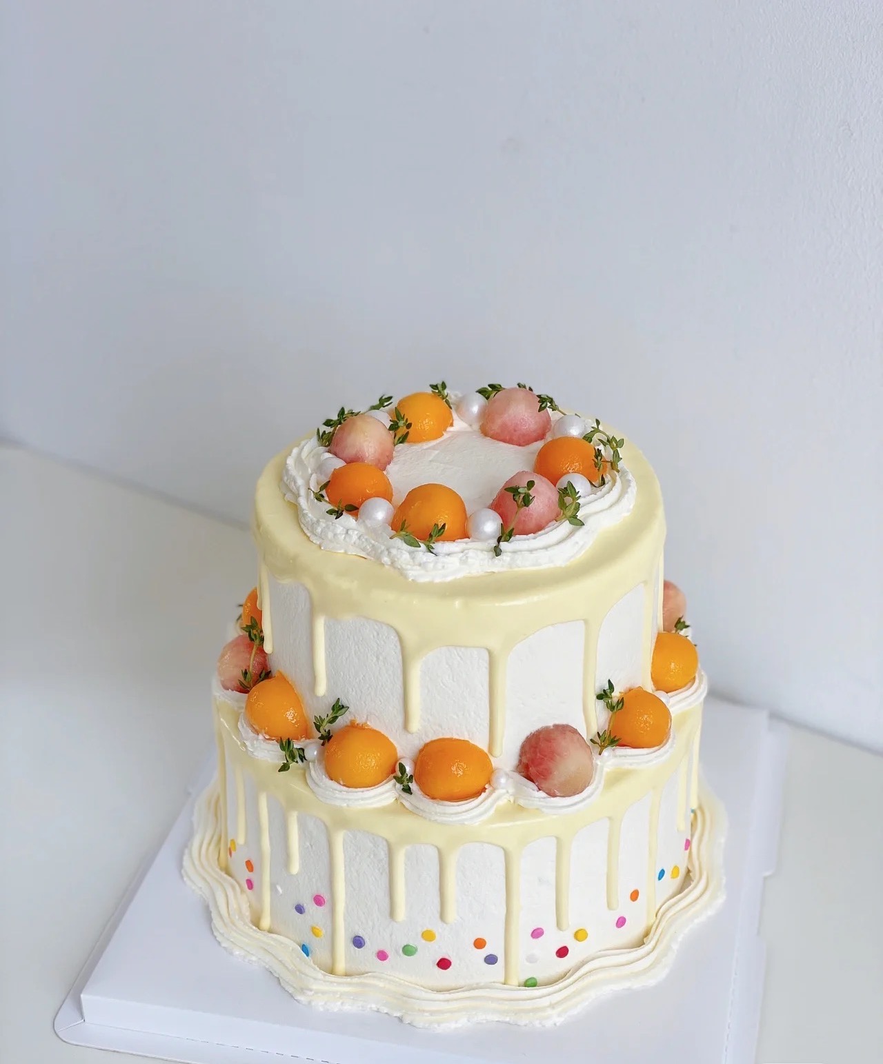 浅色淋面·双层新鲜水果蛋糕(图片6寸加8寸)