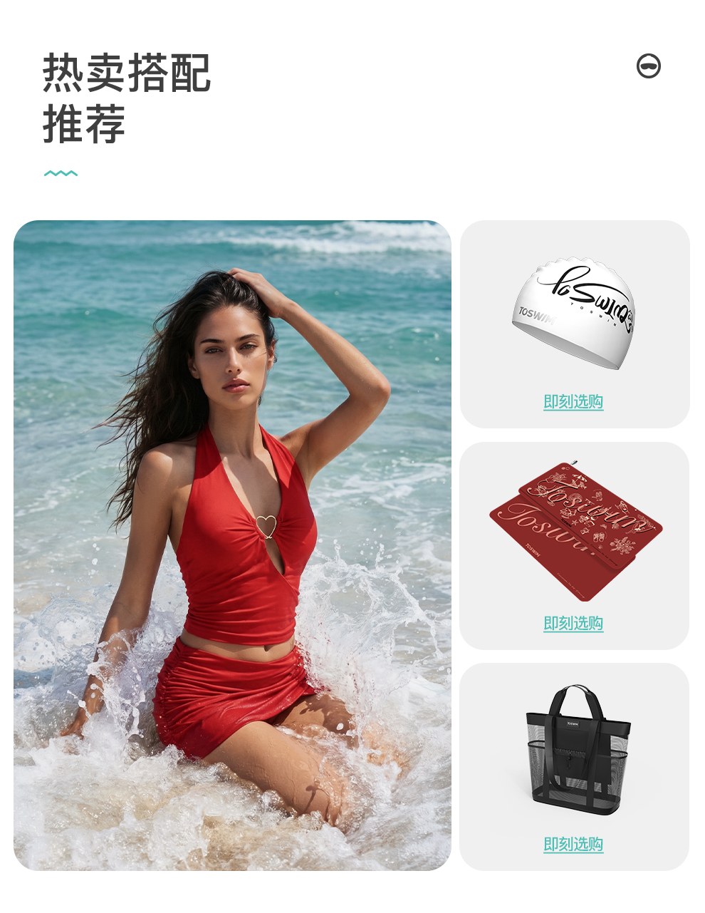 [情人节限定]TOSWIM泳衣泳装分体无袖裙式度假冲浪温泉拍照高级感女士2026年新款钟爱一生