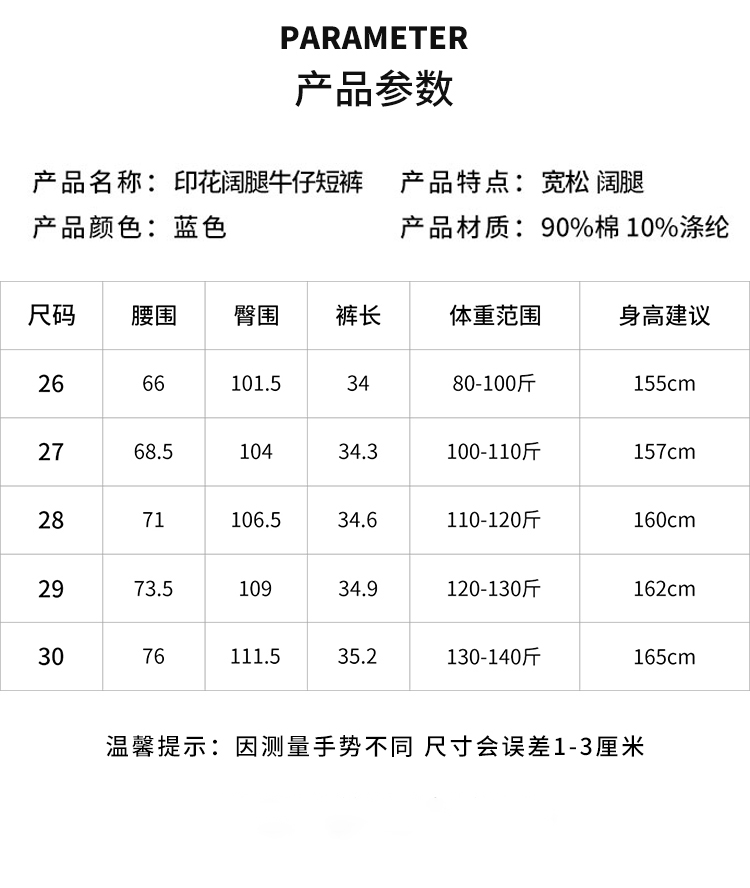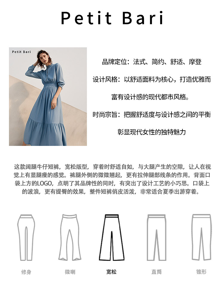 【2件9折】【Petit Bari】印花阔腿牛仔短裤 休闲百搭 高品质 时尚短裤