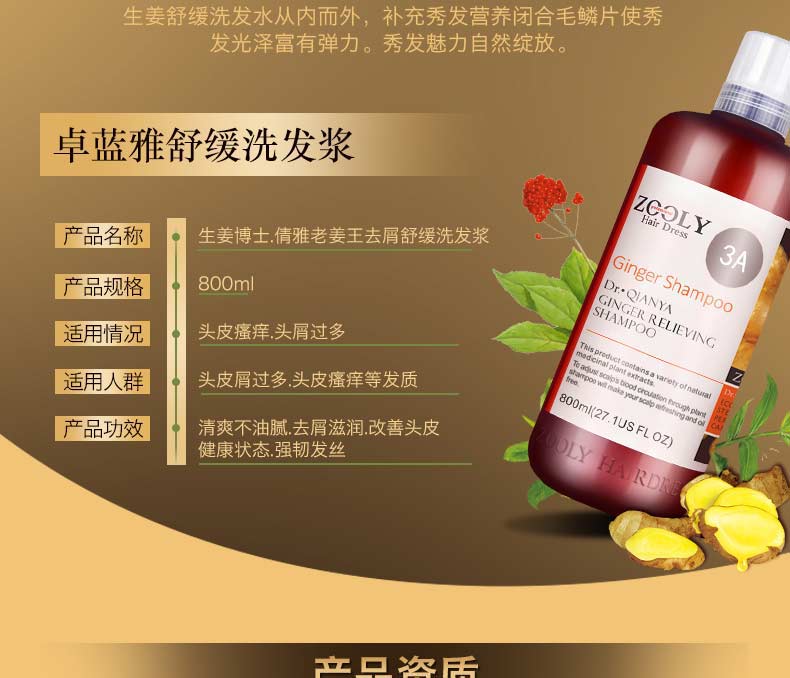 卓蓝雅原液萃取生姜去屑净透清爽洗发水3A 800mL