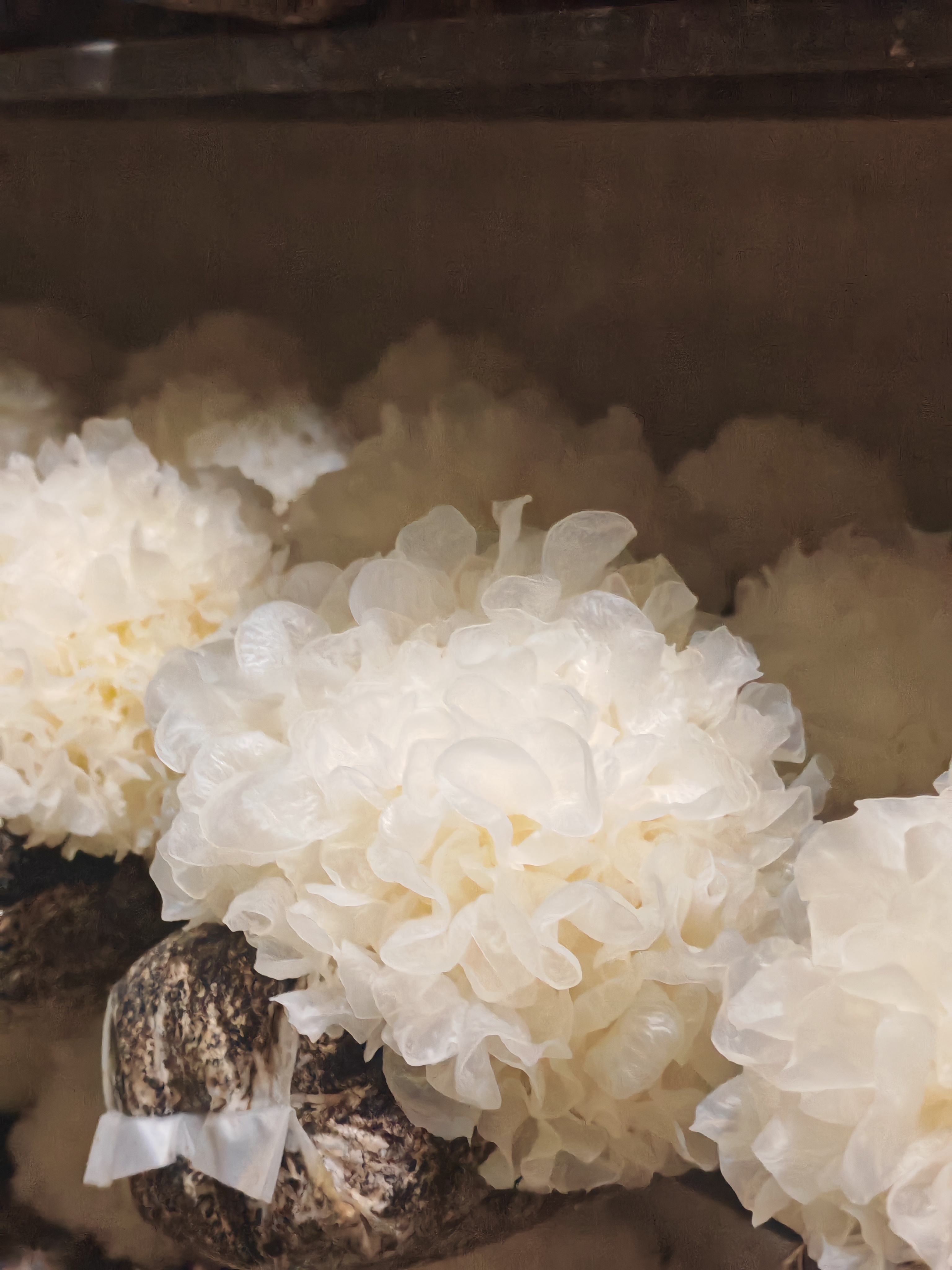 养银耳的都是做了十几年的老菇农,懂行也用心,每一朵都用茯苓、百合、莲子这些平时特意煮来补的食材当培养基,等于从生长时就把营养攒足了,跟普通银耳比,从根上就多了份健康实在