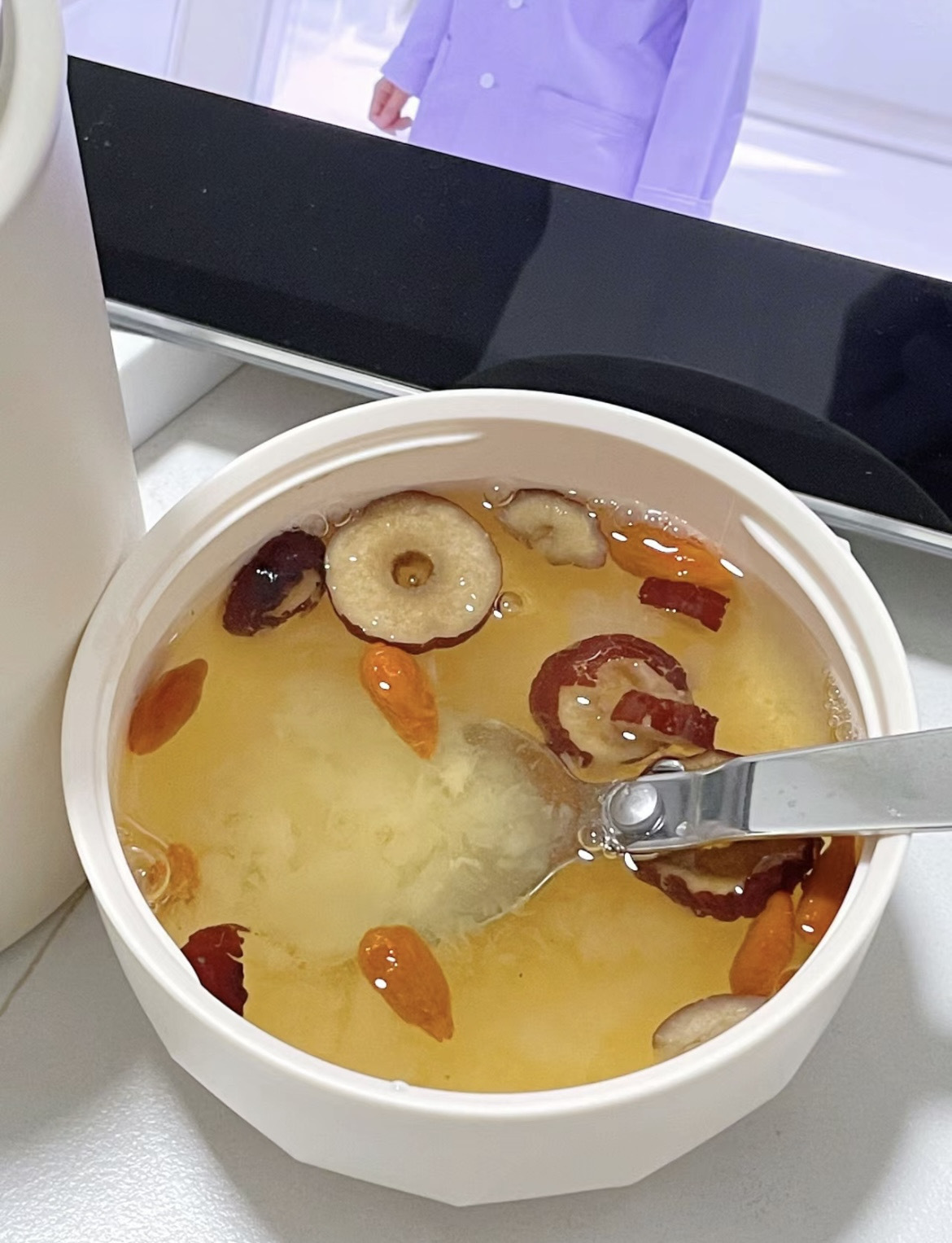 最后跟大家说个小细节:它需要焖 20 分钟,但这 20 分钟不用盯着,该洗漱、该收拾东西都不耽误,等忙完刚好能喝到出胶满满的银耳,这点我觉得特别贴心。