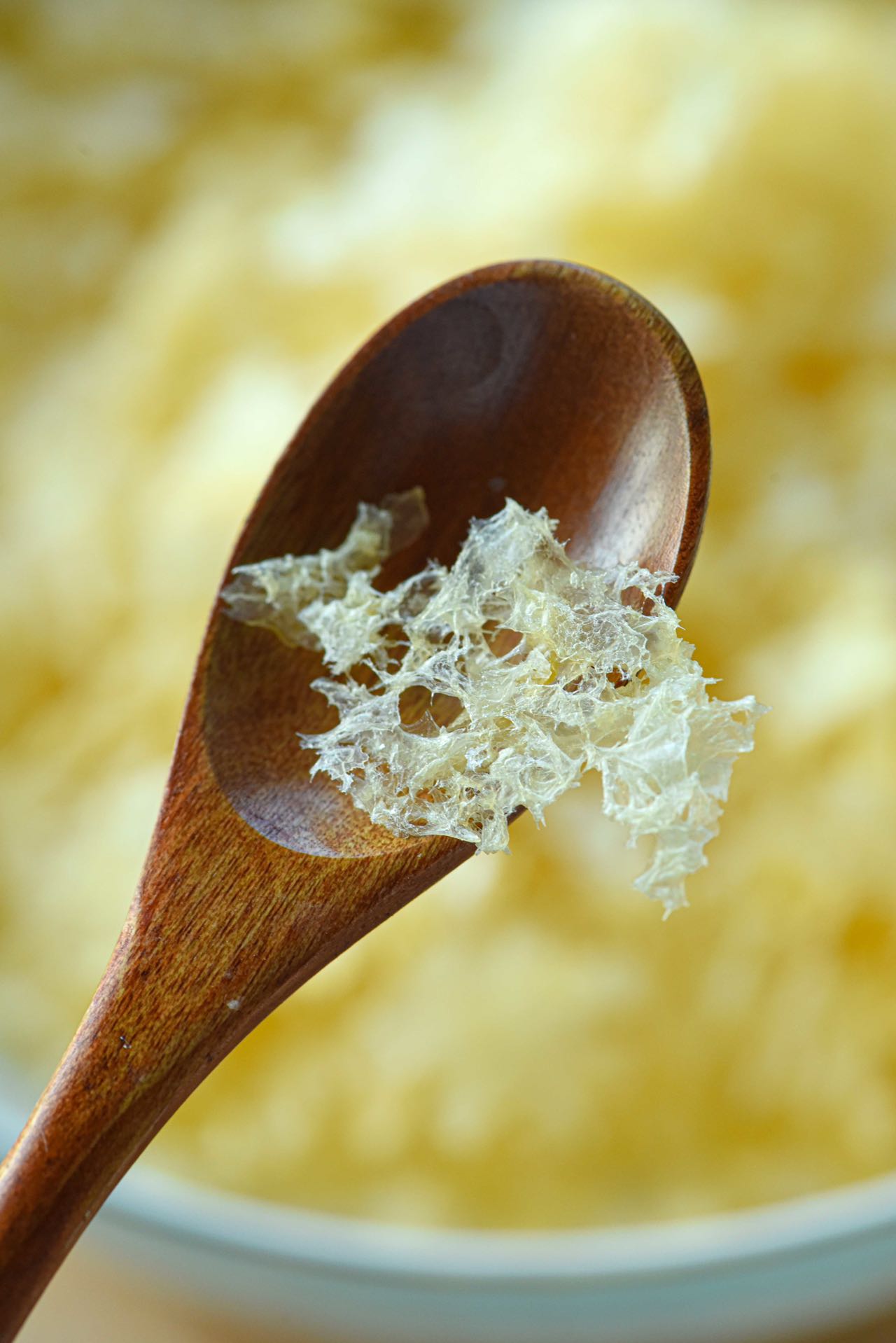 每一朵新鲜的本草银耳,最后只能做成大概 6 克成品。从采摘到烘干,要过十多道工序,工人会把老的耳蒂都去掉,只留下最嫩、出胶最好的耳瓣,等于每一口喝到的,都是挑出来的精华。