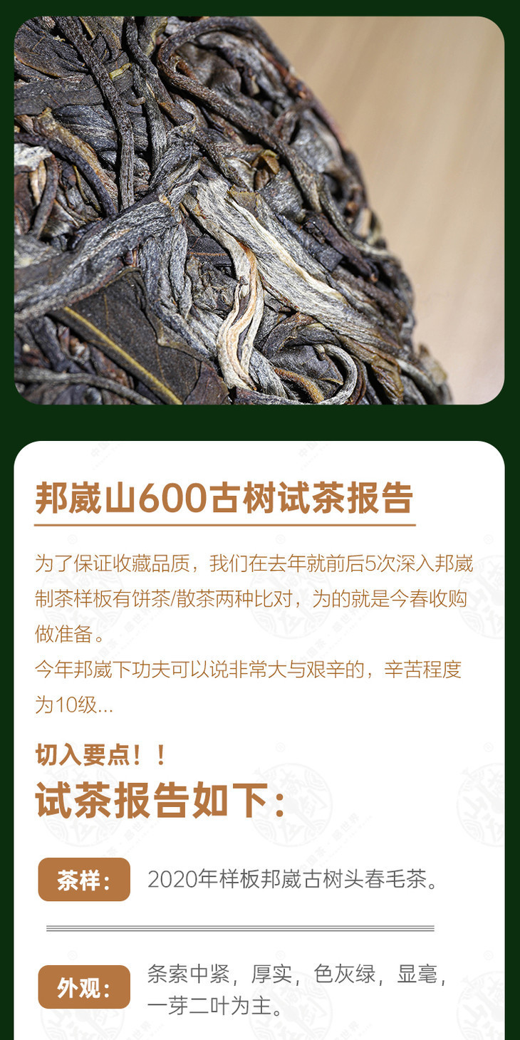藏剑山庄 2021春茶 邦崴600年古树茶 357克/片 拍5片送1片!