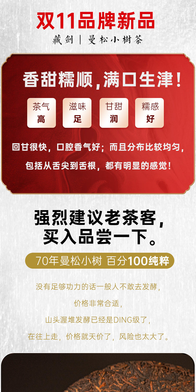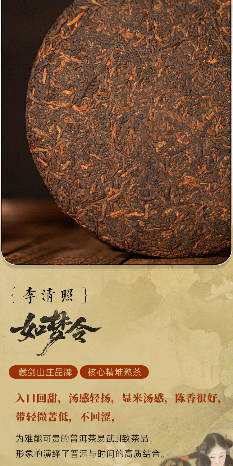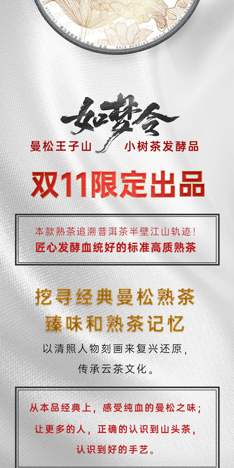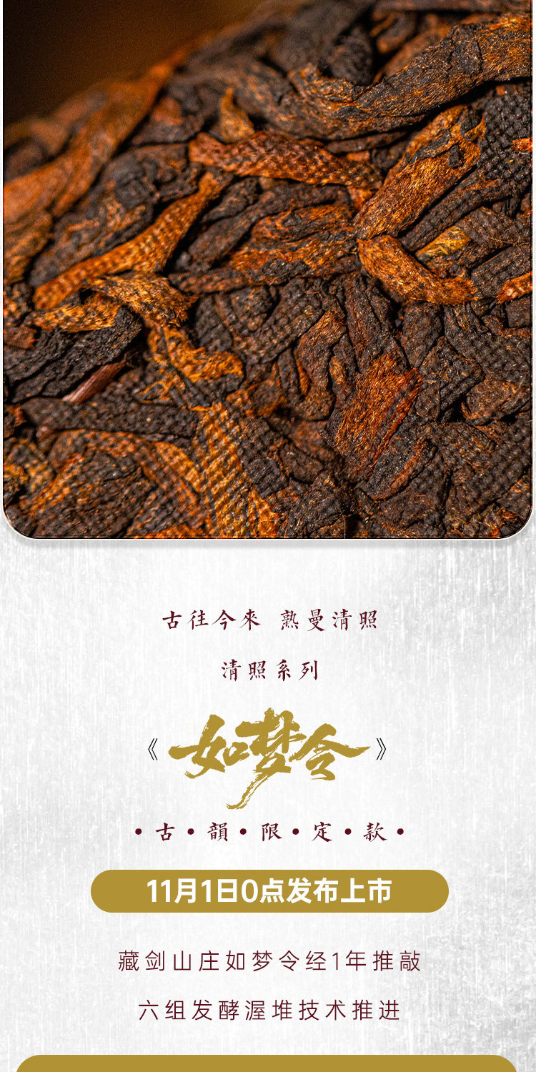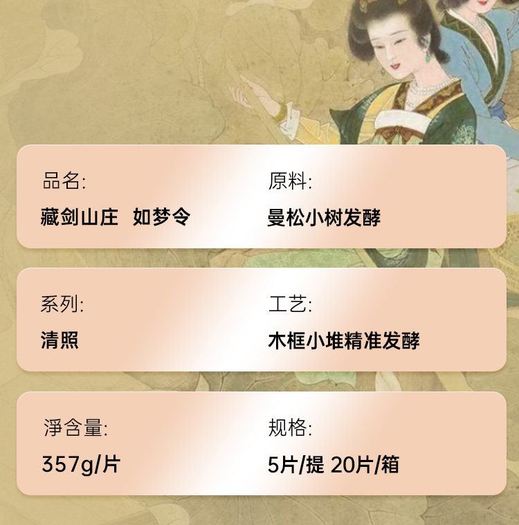 【藏剑山庄】郭少华发酵 如梦令易武曼松木框发酵高端古树熟茶357克!5片/提 !整提送1片