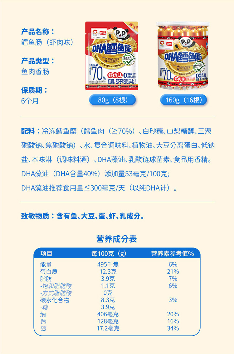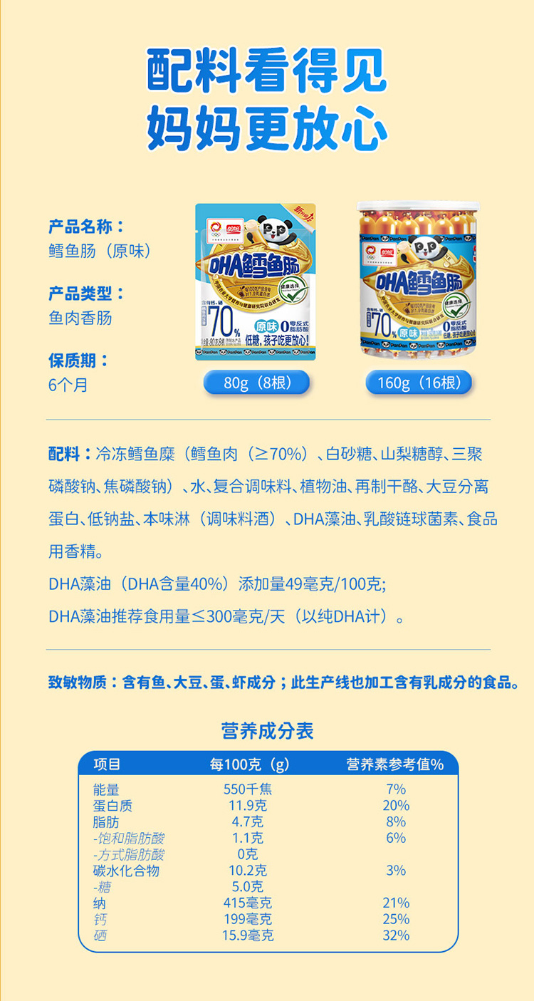 【69任选10件】盼盼DHA鳕鱼肠80g袋装