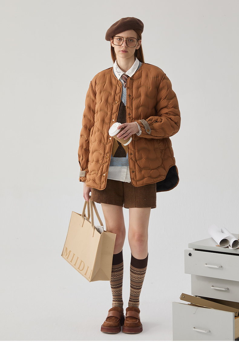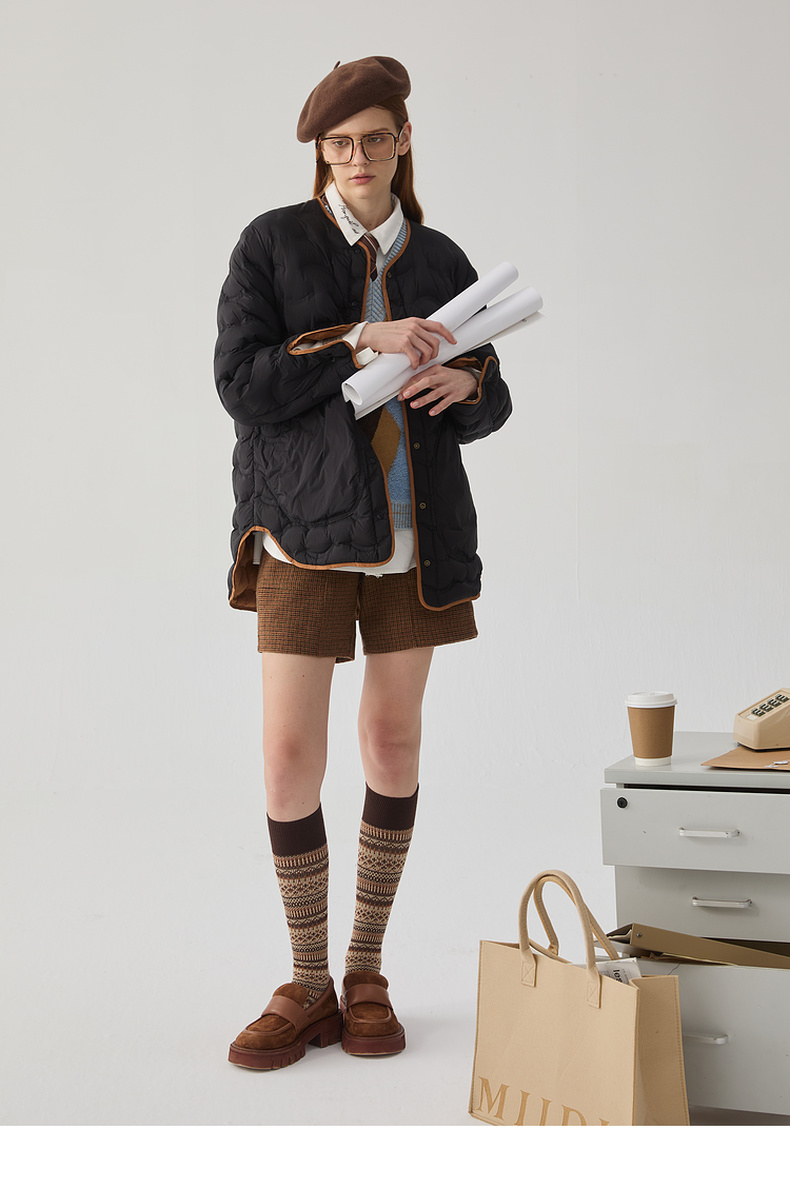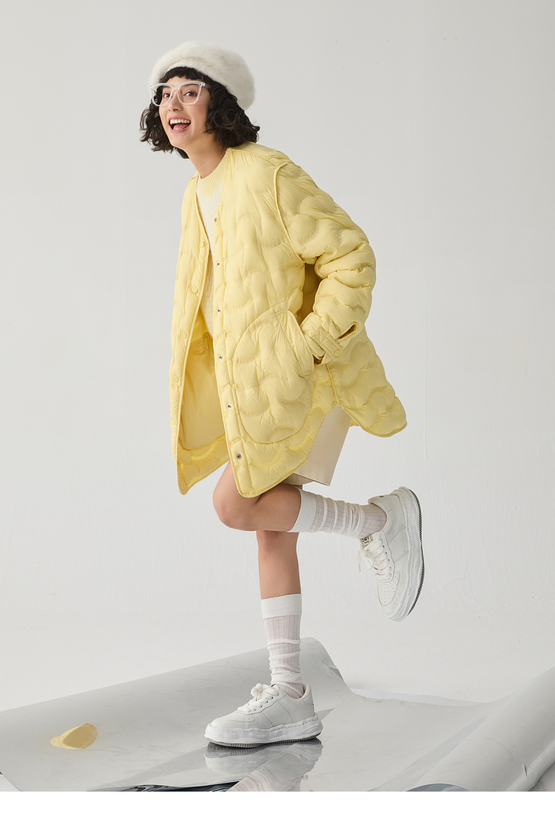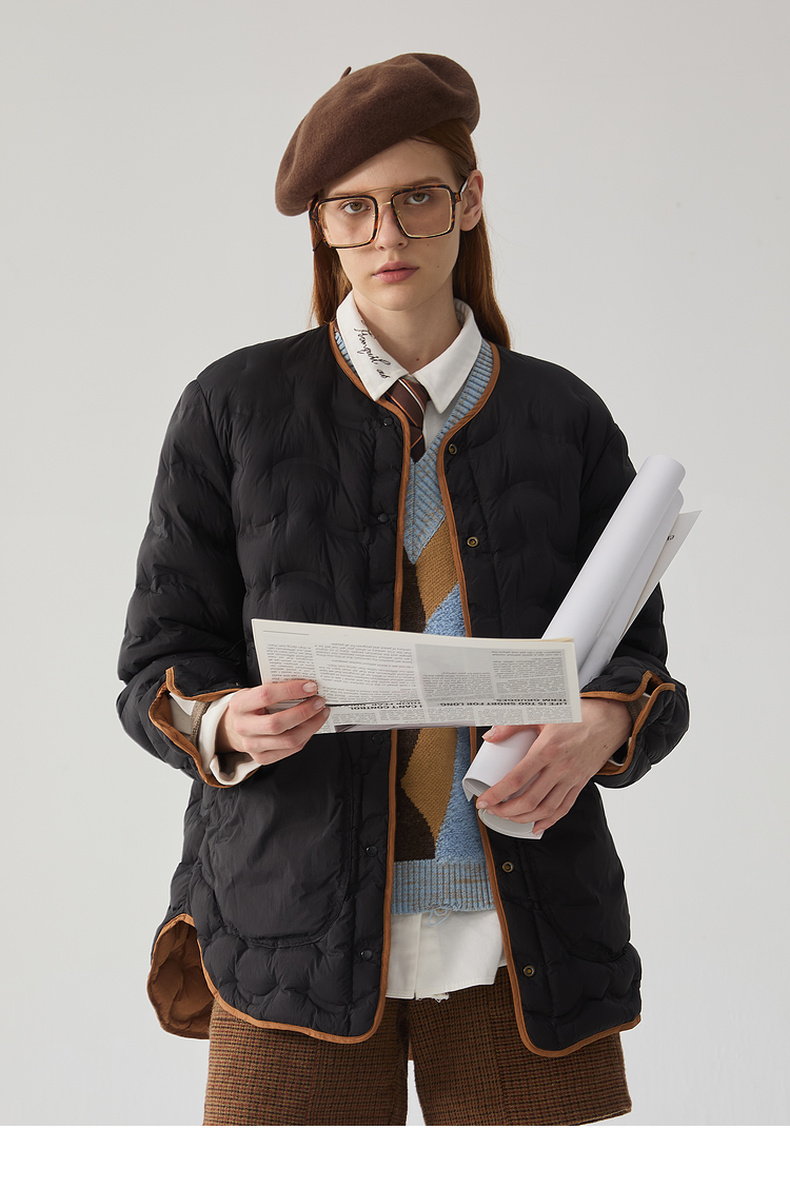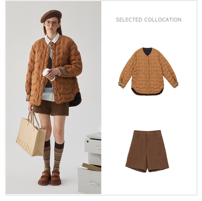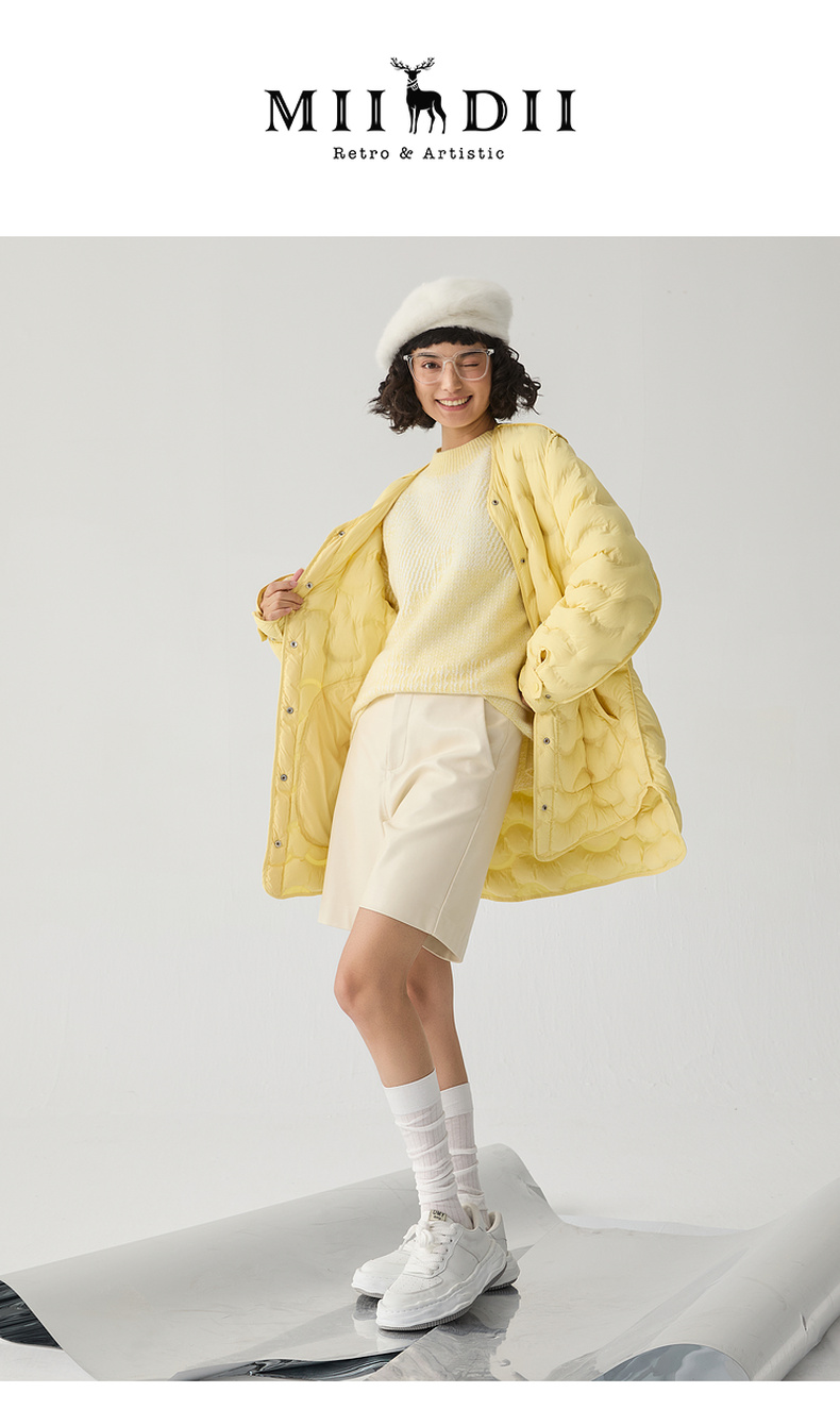 谜底双面穿羽绒服女2024冬新品简约百搭宽松中长鸭绒服244MY1518