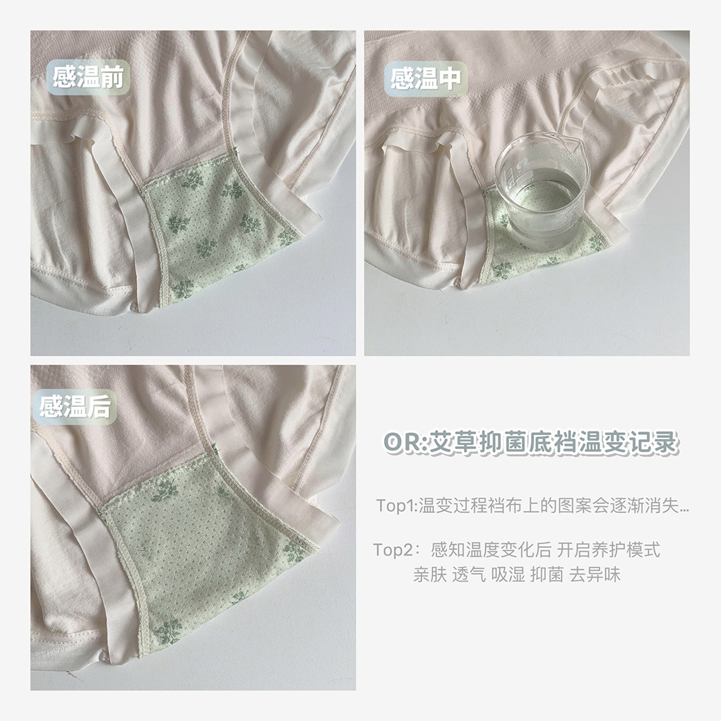 高品质厂家直销艾草温变星期裤收腹绝提臀抗菌裆柔软轻薄透气少女