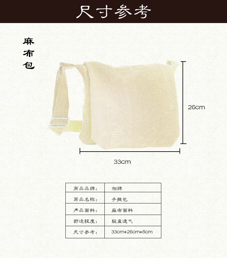 【相牌】麻布手提包 单肩包帆布朝山袋 僧包僧袋和尚包居士包