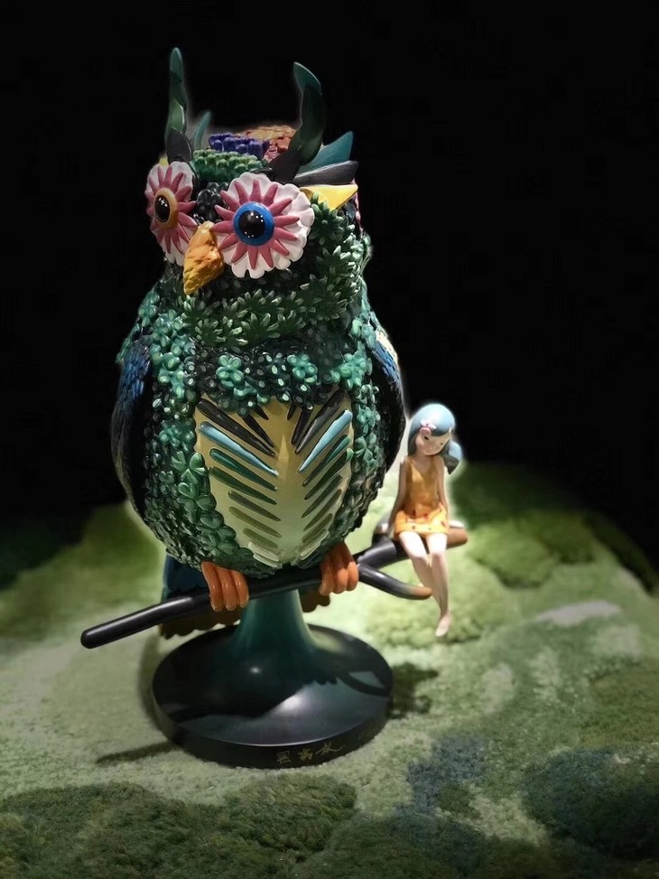 艺术家黑荔枝雕塑《守护天使》艺术家:黑荔枝材质:宝丽石手绘尺寸:32x21x16cm限量:100年代:2017