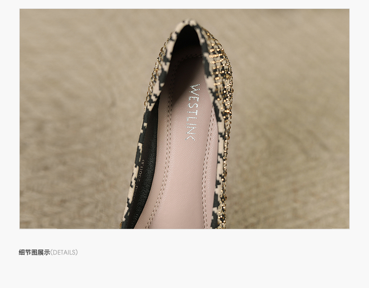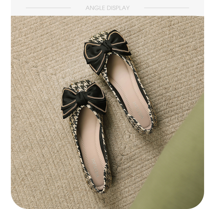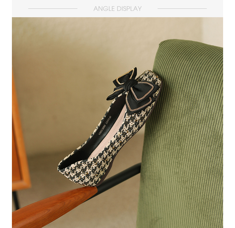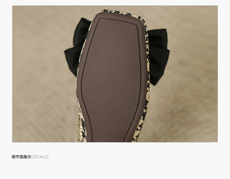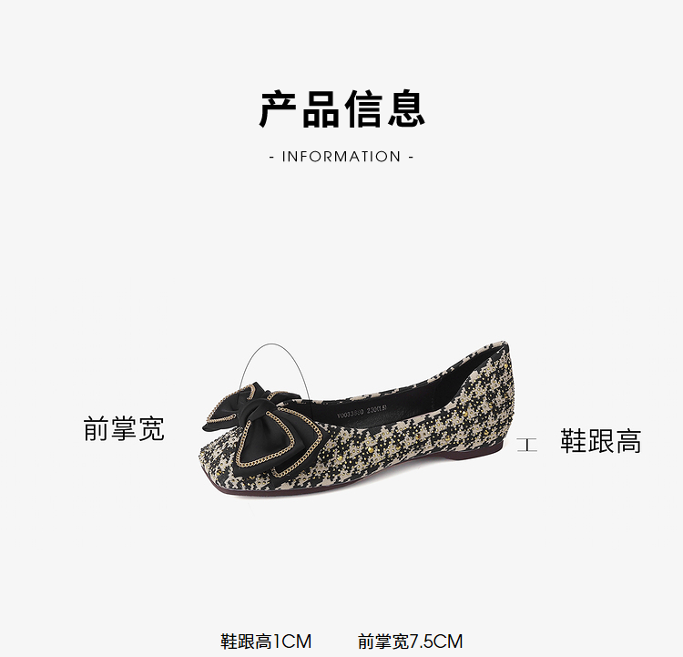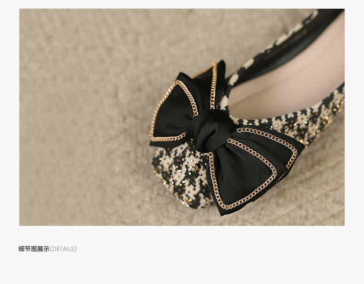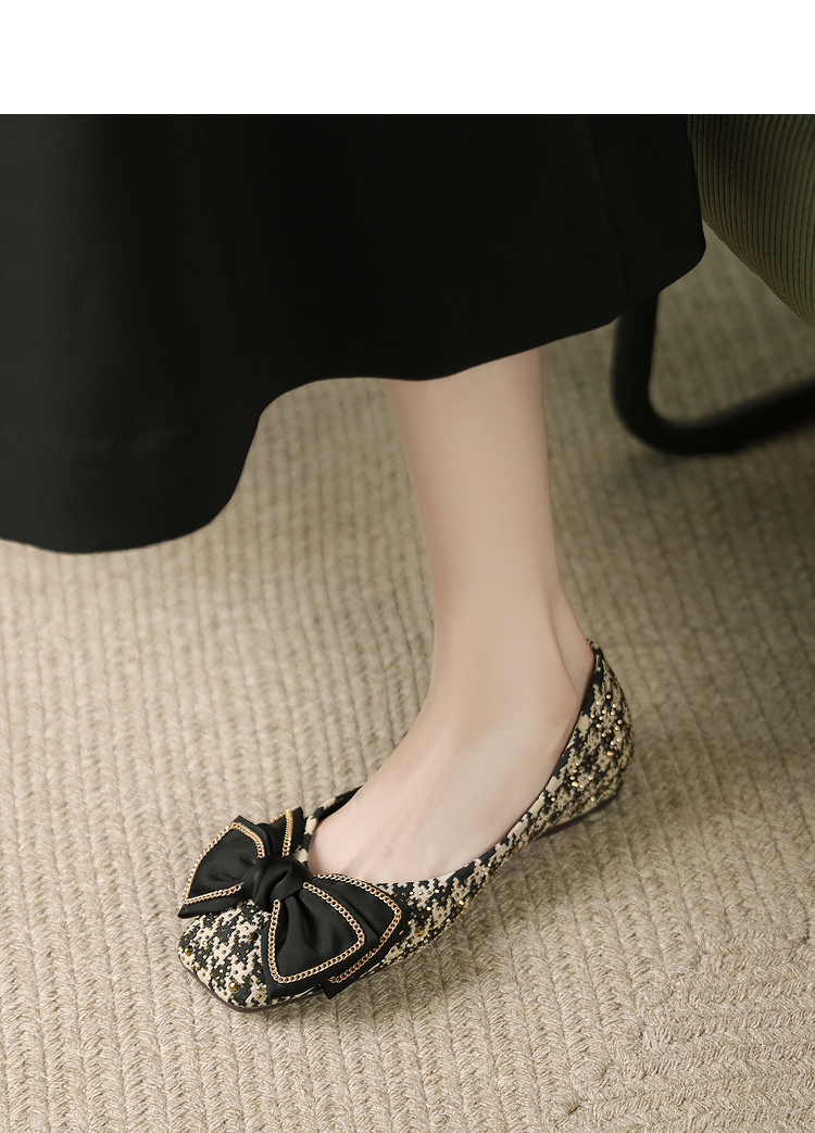 西遇小香风软底单鞋女新款法式晚风蝴蝶结浅口方头平底鞋V0033880