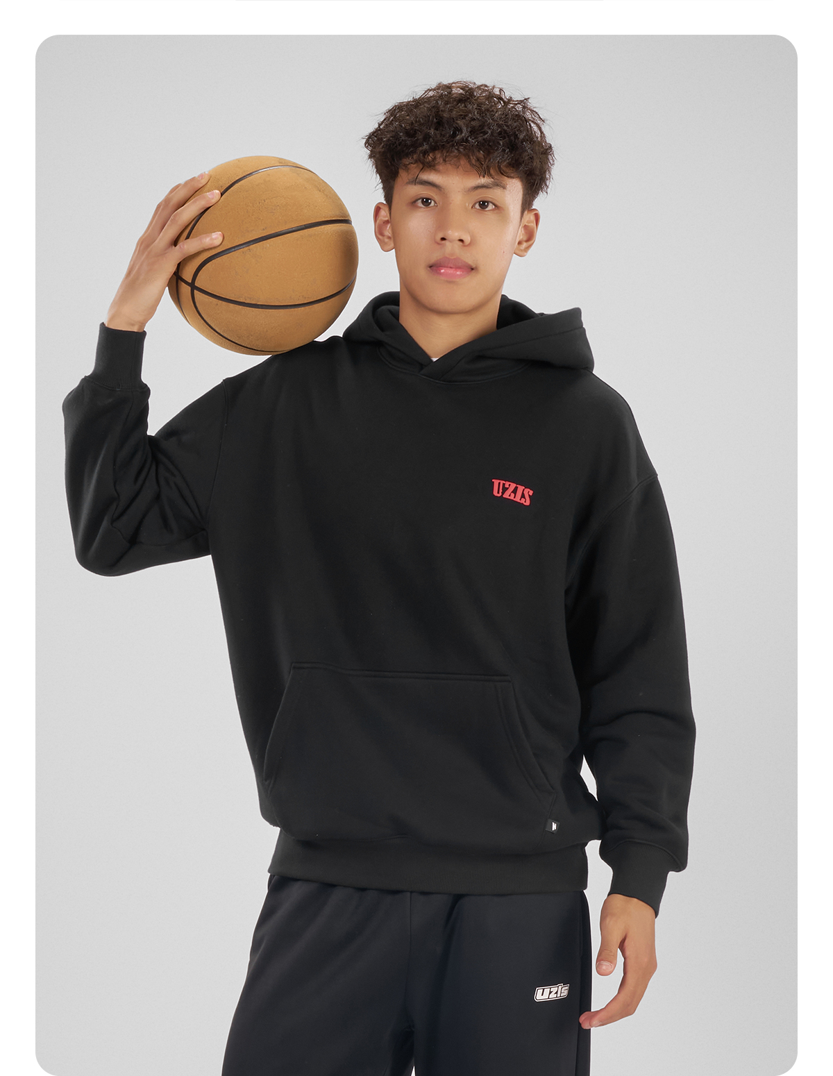 有志者UZIS 美式潮流运动卫衣男秋冬加绒保暖篮球连帽套头衫[出彩