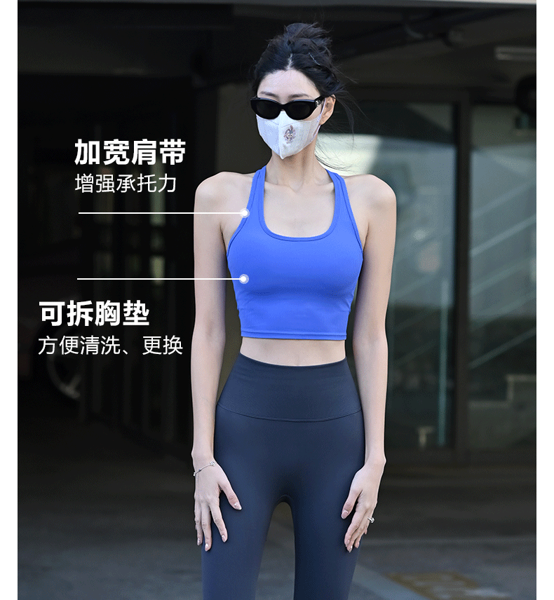 Beemen新款螺纹工字美背瑜伽背心女 可拆卸杯垫低强度运动背心 速干健身上衣