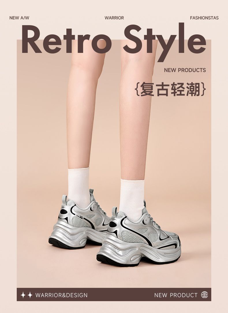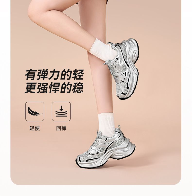回力老爹鞋女2025秋季新款网面透气女鞋厚底显高百搭休闲运动鞋女