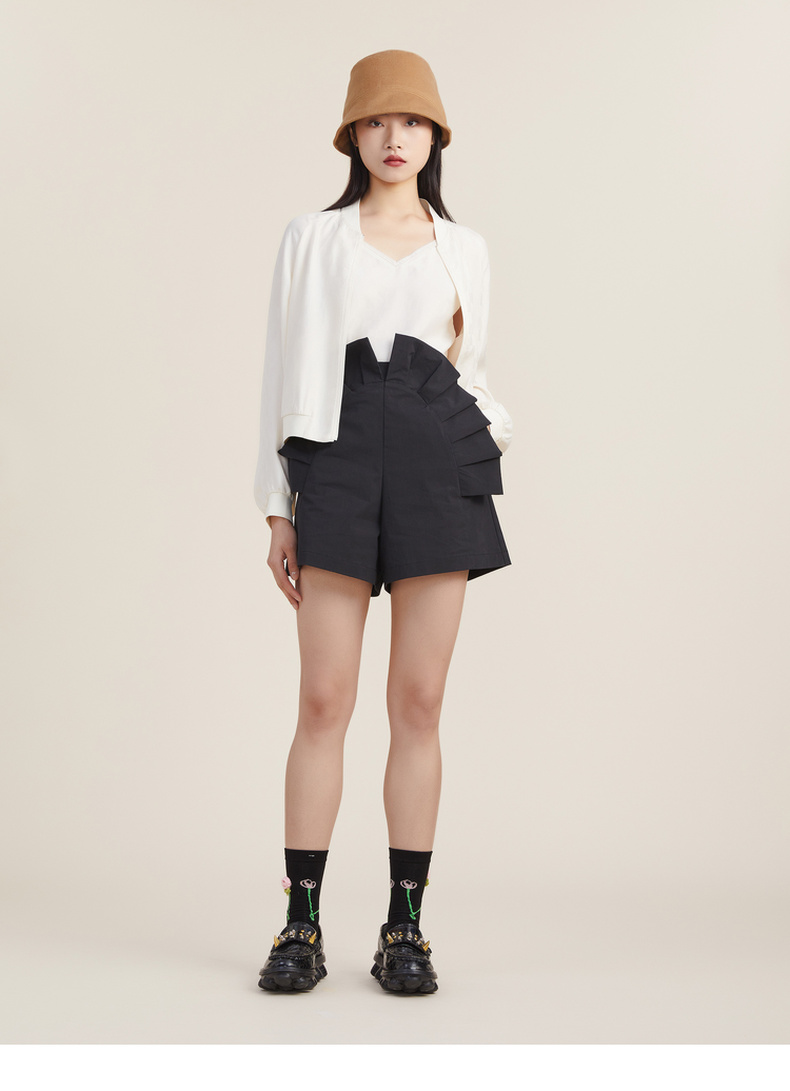 谜底短裤女2022秋新品设计小众花瓣造型休闲裤223MK1051