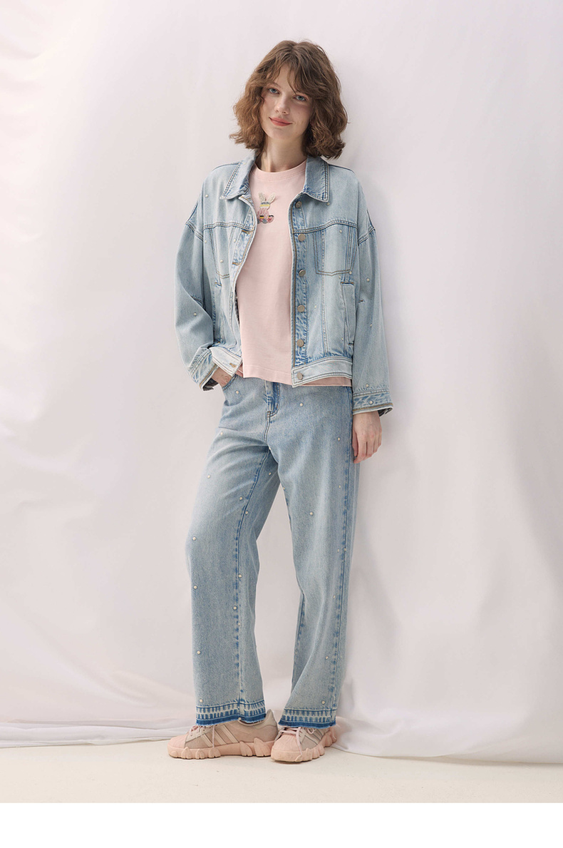 谜底大廓形牛仔外套长袖2026年春季新品柔软舒适圆点女261MW0060