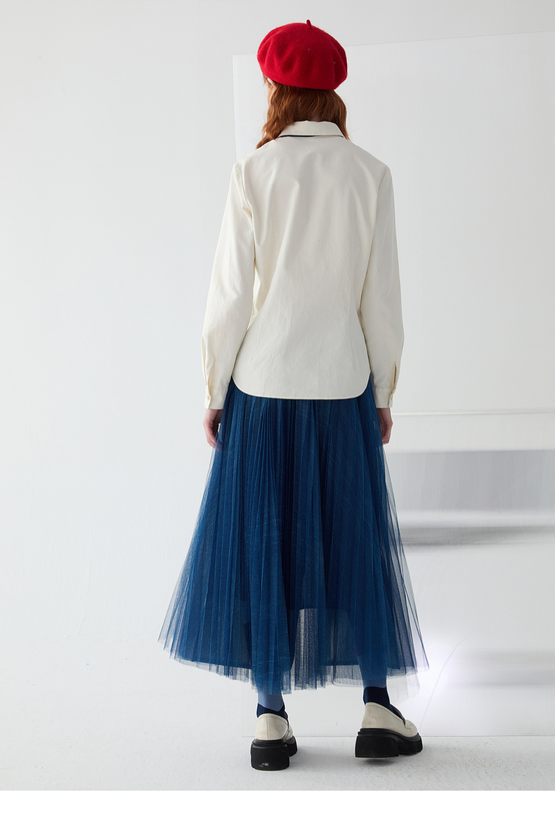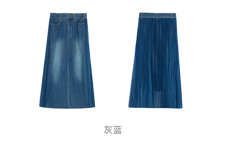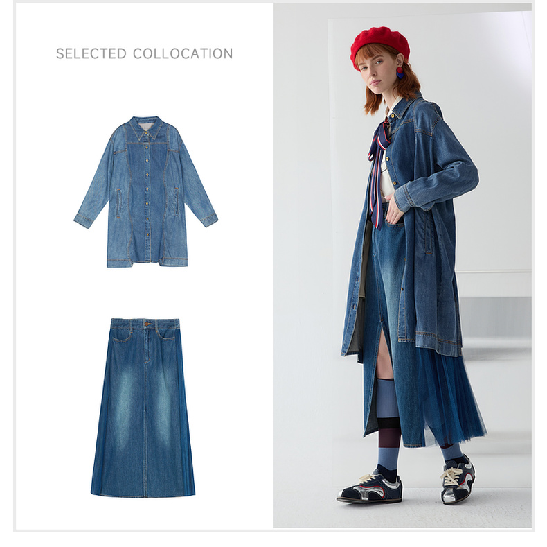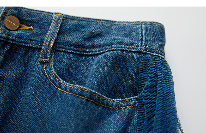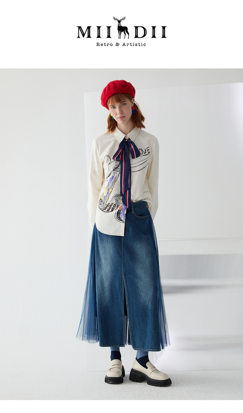 谜底牛仔拼接网纱半身裙2025春新品复古文艺宽松中长裙251MB0035