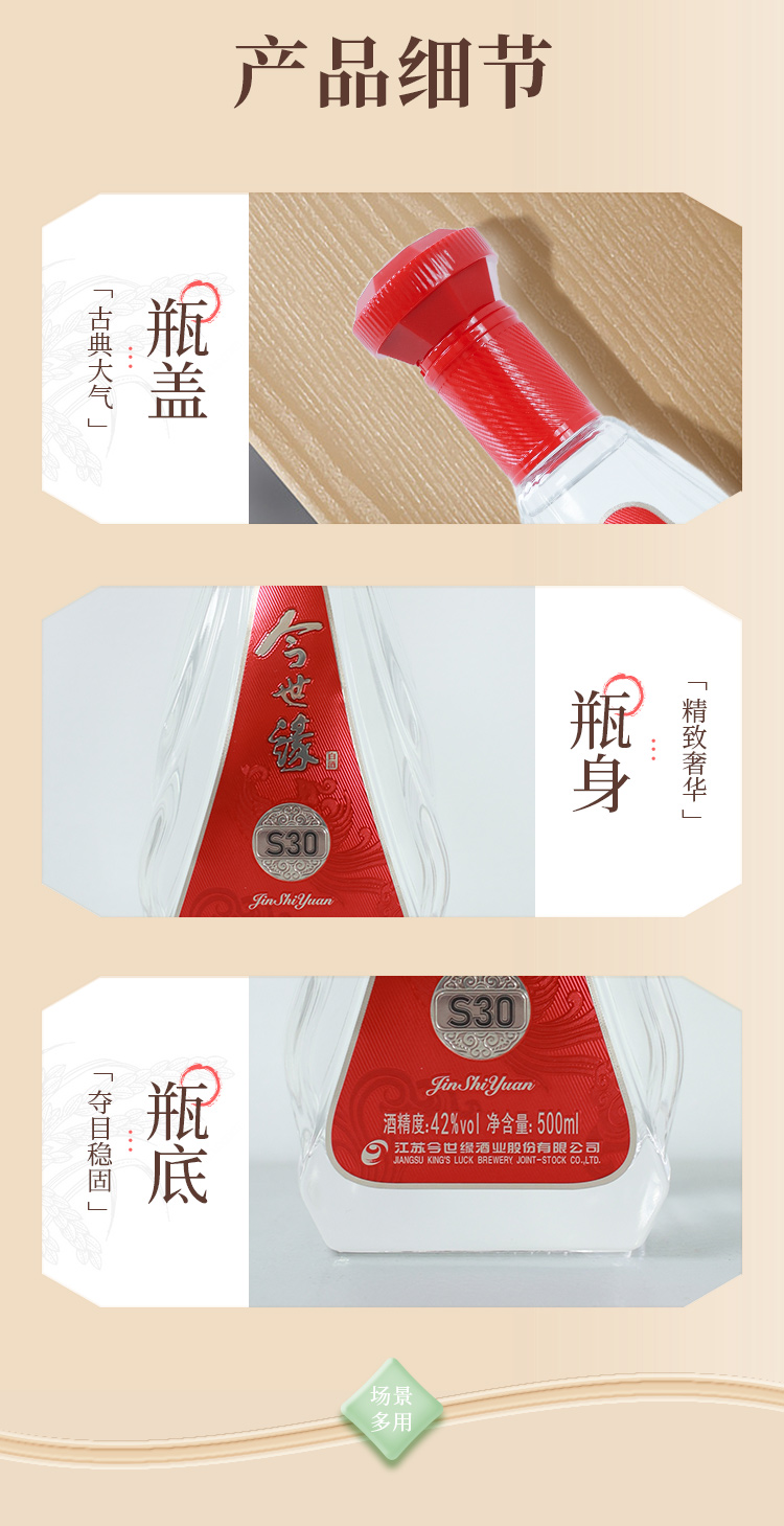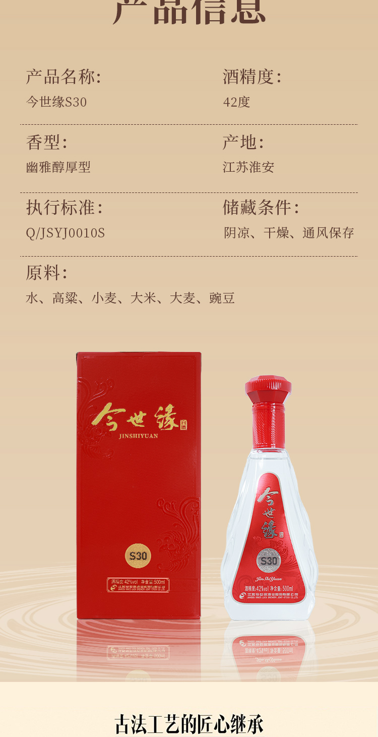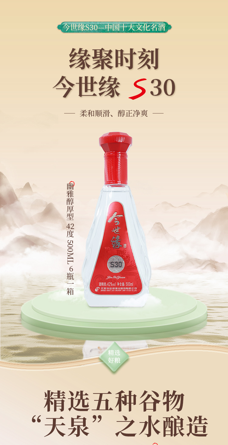 今世缘S30浓香型白酒水42度500ml*6瓶【臻选好酒】