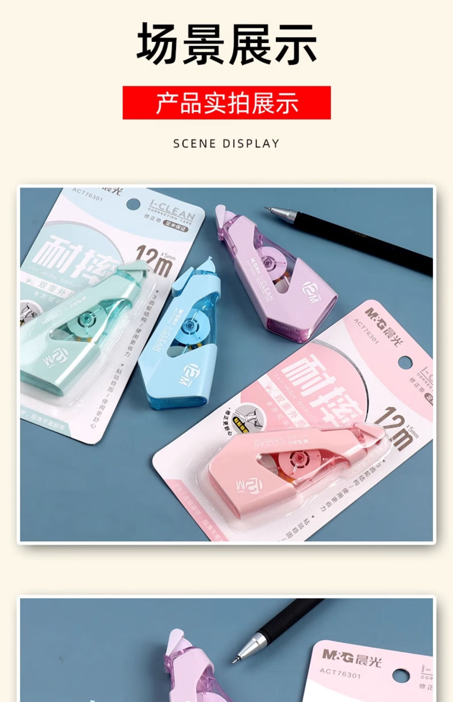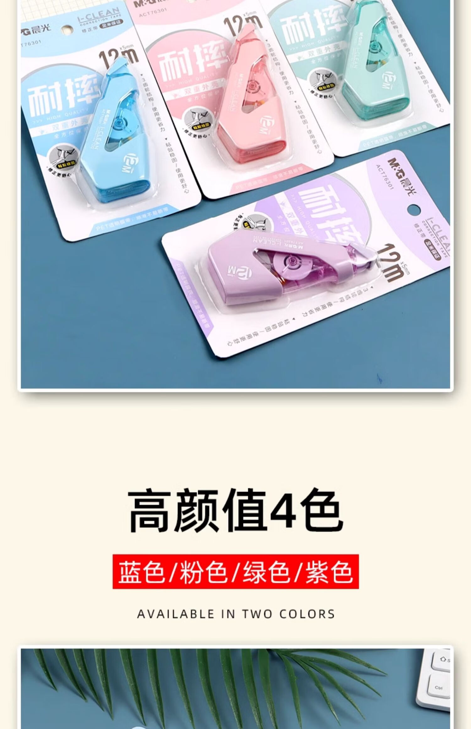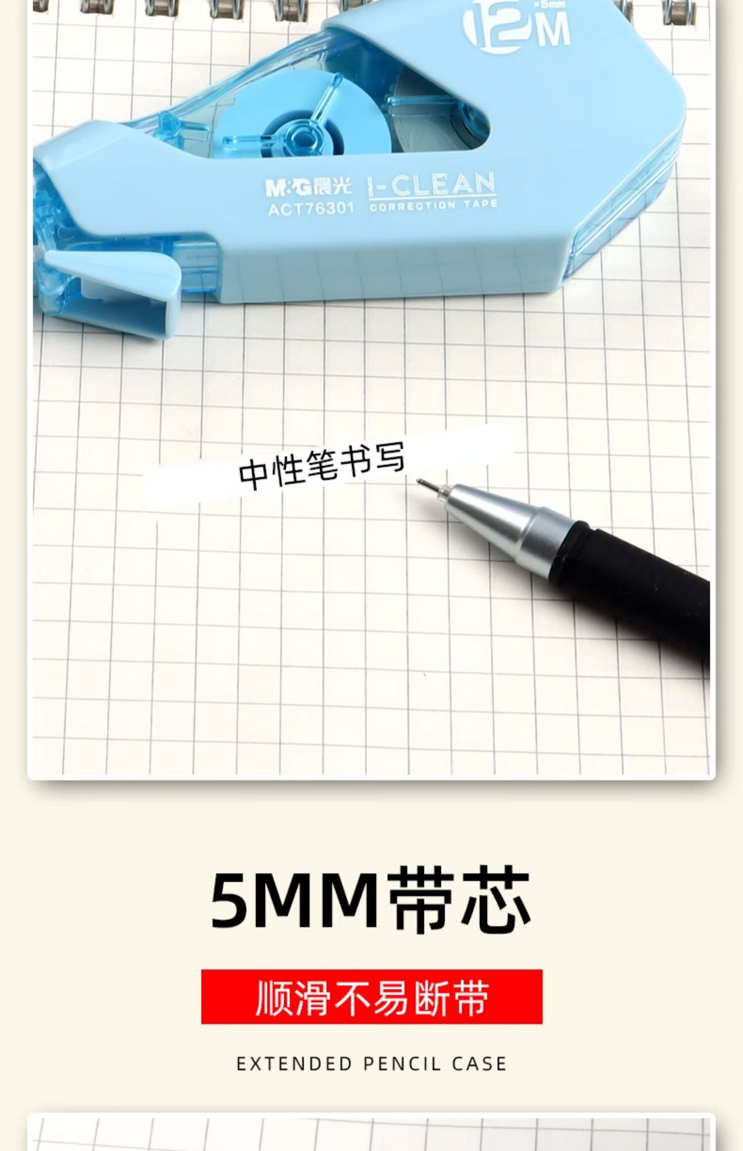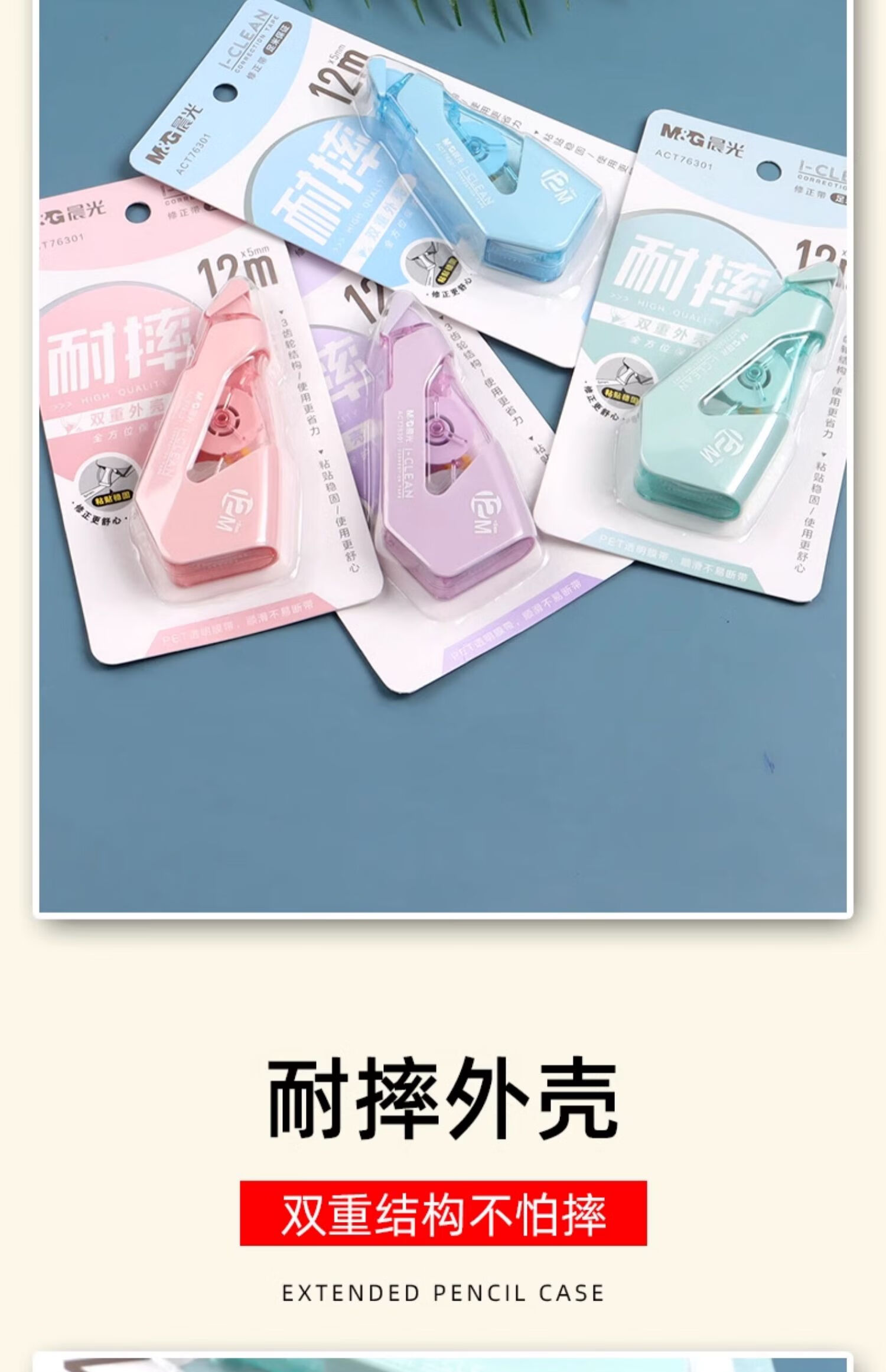 ACT76301晨光耐摔修正带12m 学生专用隐形涂改带改正带(外壳颜色随机)