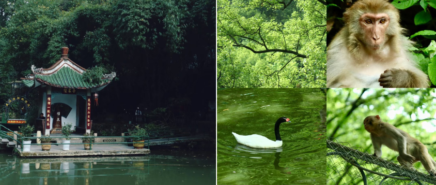 以明山、秀水、幽林、古寺、圣泉、灵猴而闻名遐迩。