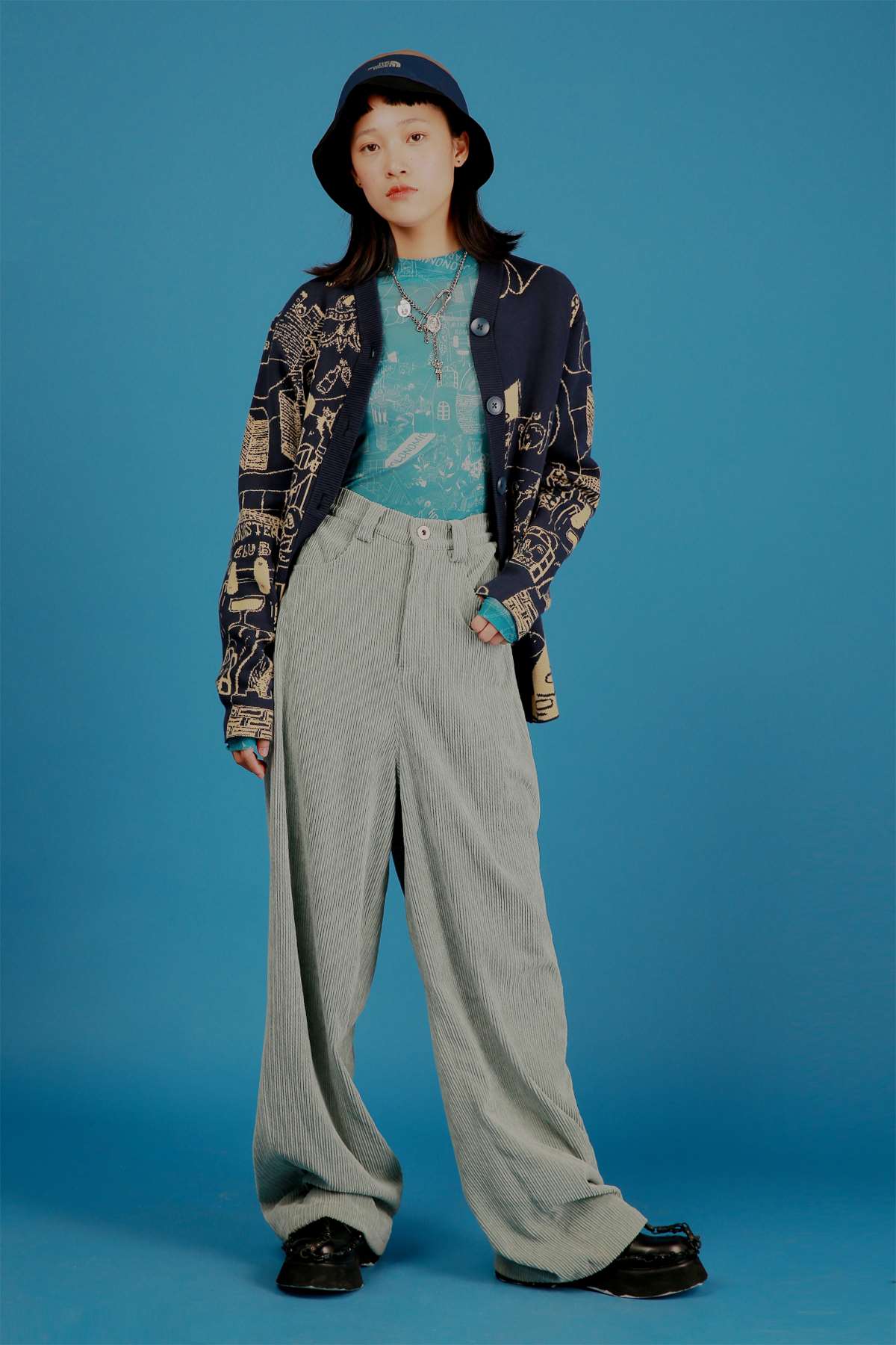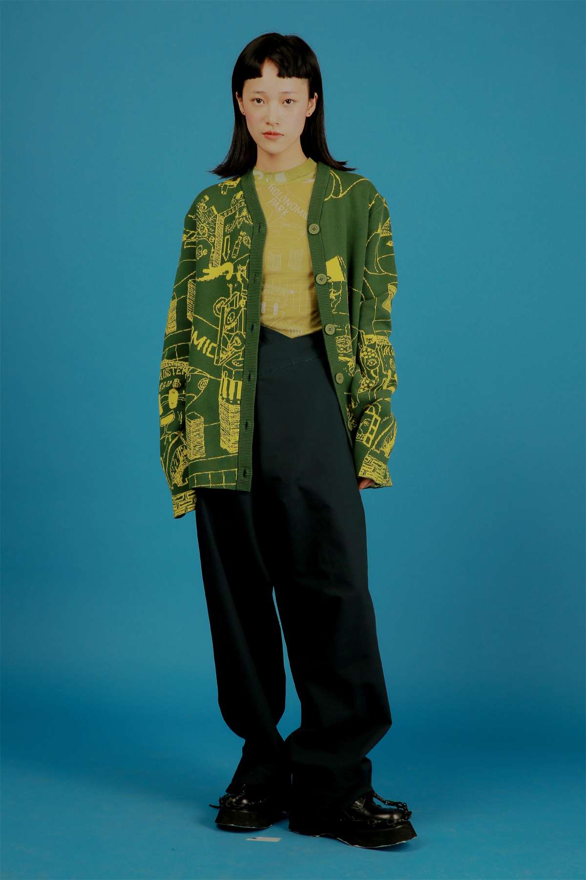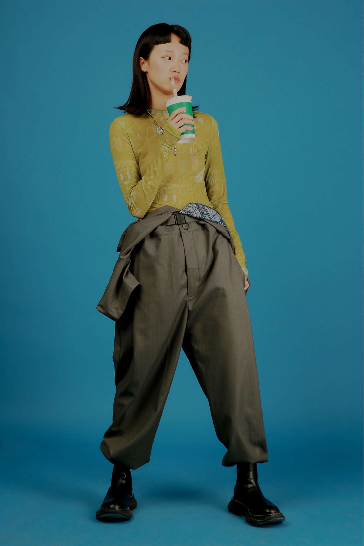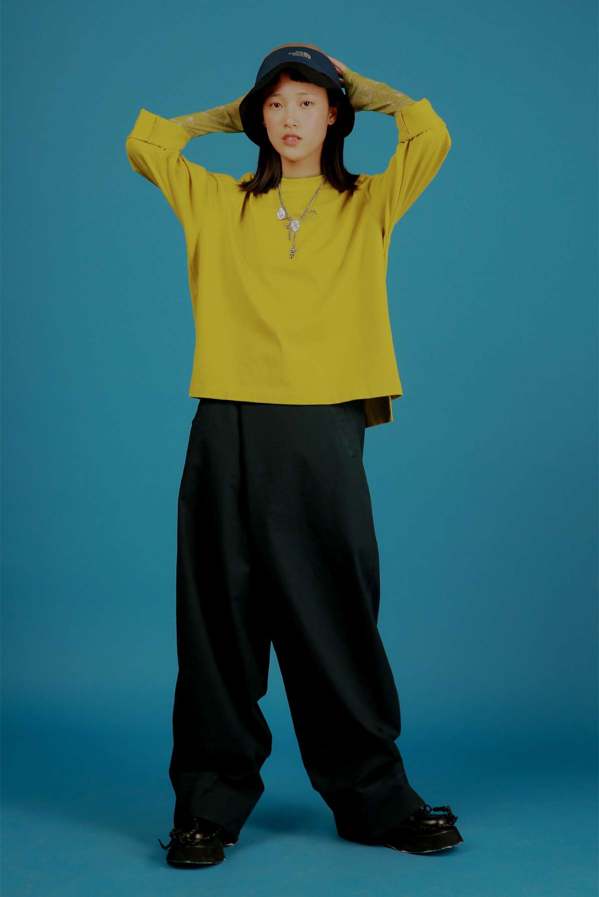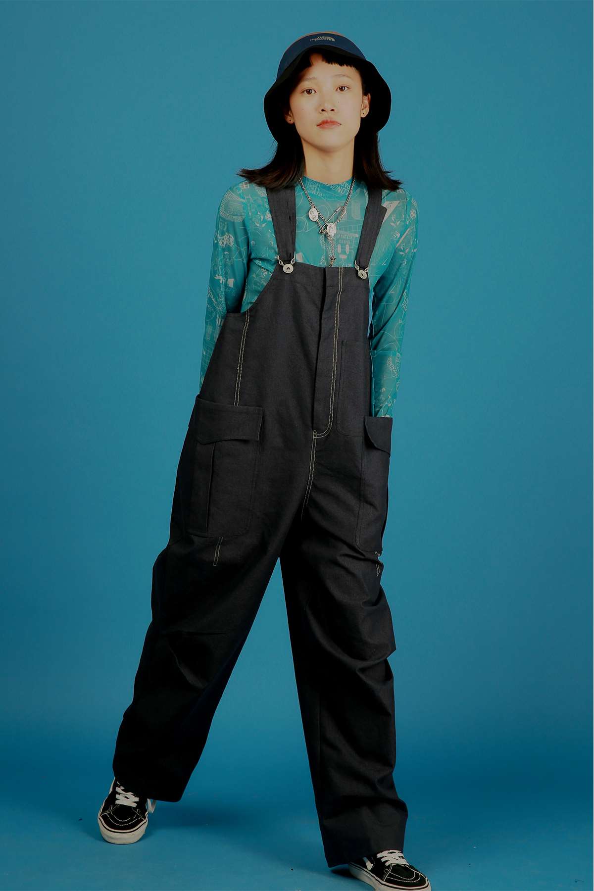 HOLONOMIC 原创设计印花网纱弹力修身长袖打底衫