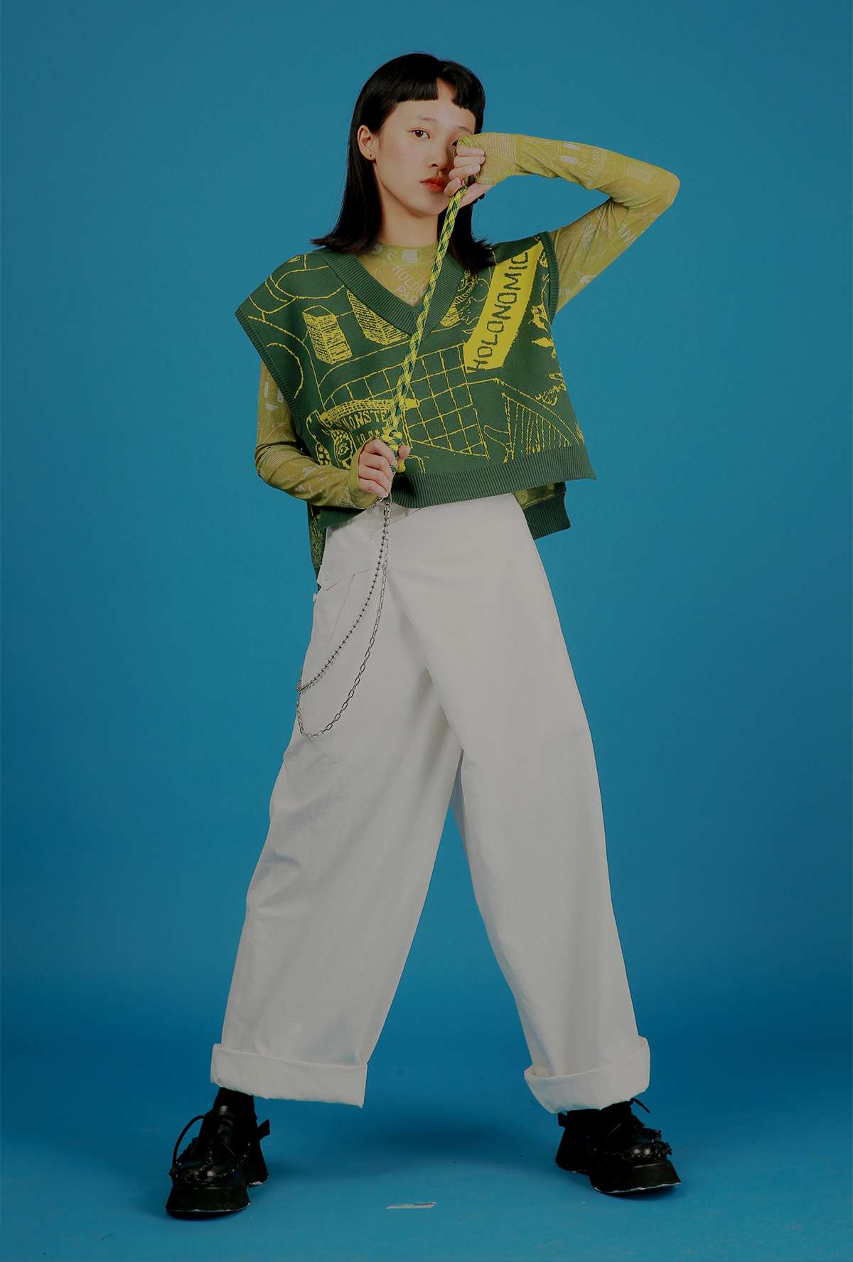 7440 37 1 SS21 贯穿结构对称拼色镂空宽松休闲百搭夏季背心T恤