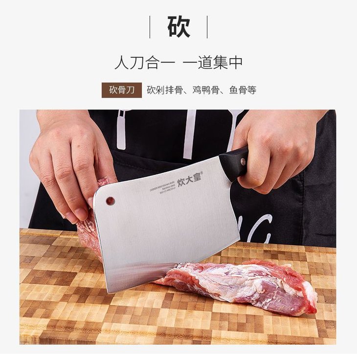 轻松砍切排骨、鸡骨、冻肉等,刀身坚韧不易崩口