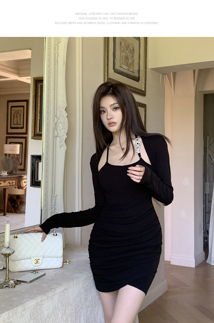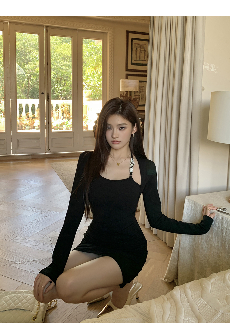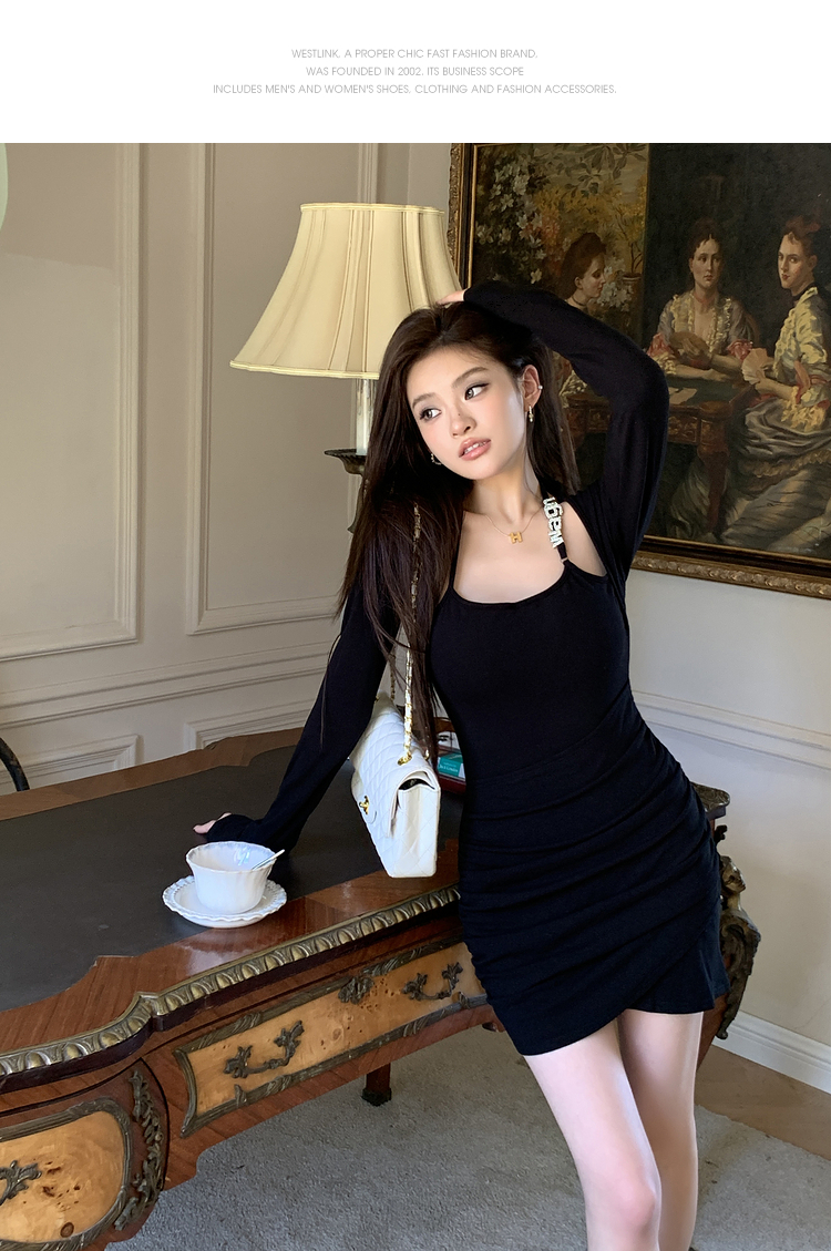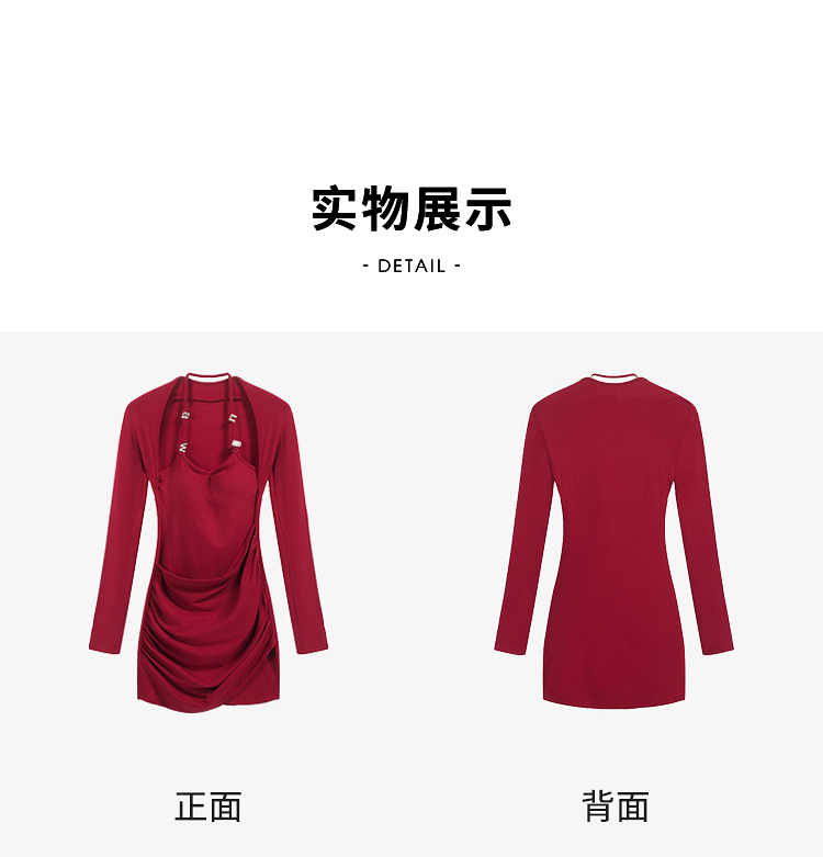 西遇短款假两件连衣裙女冬季新款不规则设计感修身显瘦短裙SS141284
