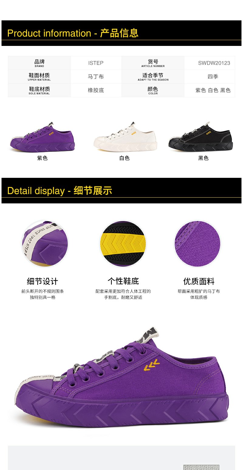 iSTEP新款女鞋 紫色轮胎底帆布鞋百搭小白鞋