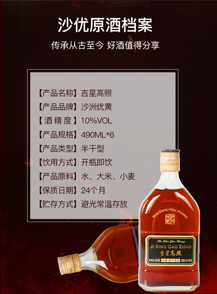 沙洲优黄吉星高照 姜汁冻藏黄酒 黑标六年陈