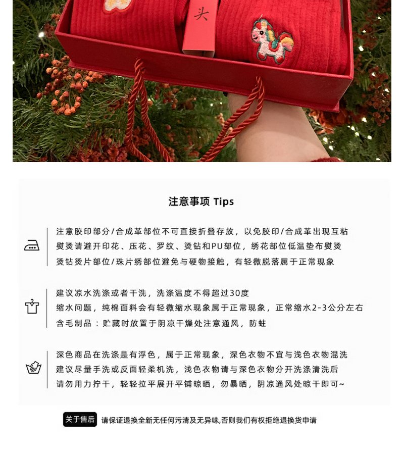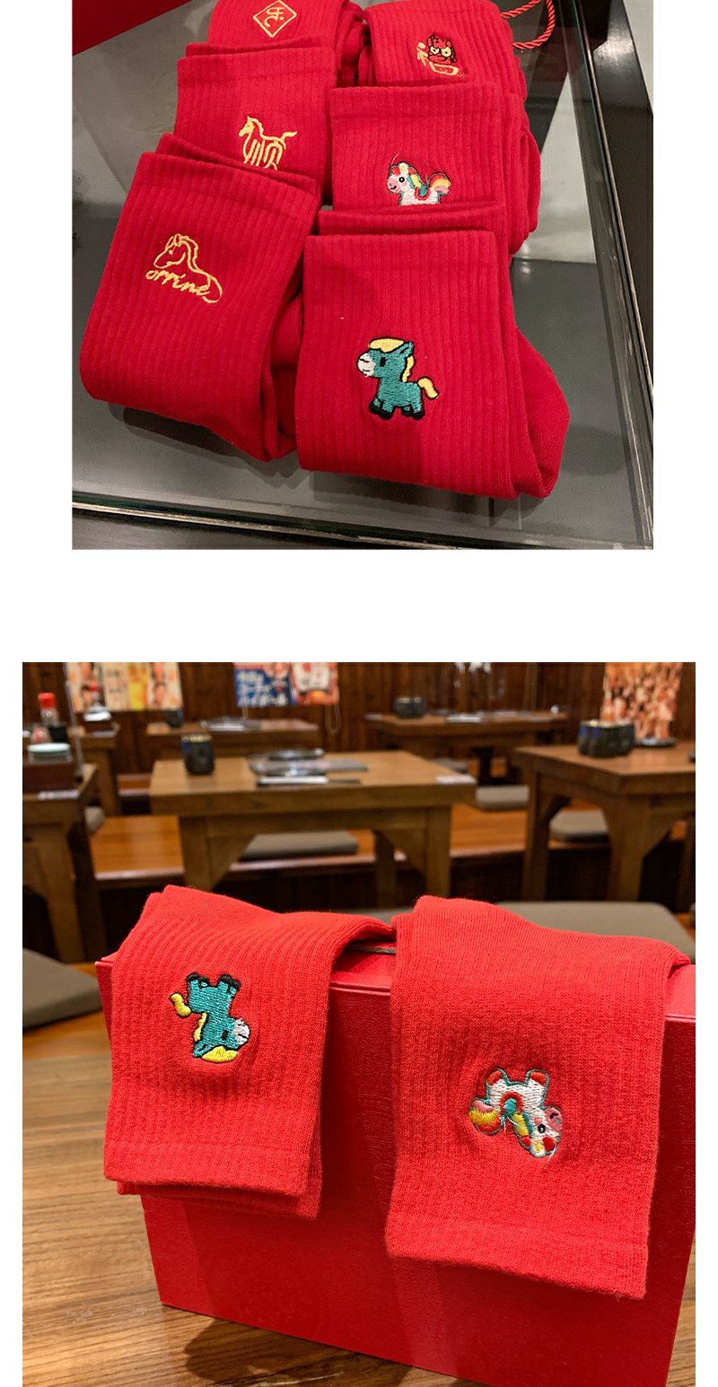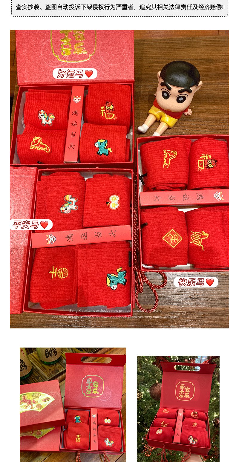 <曾小咸推荐>本命年刺绣中筒袜子红色