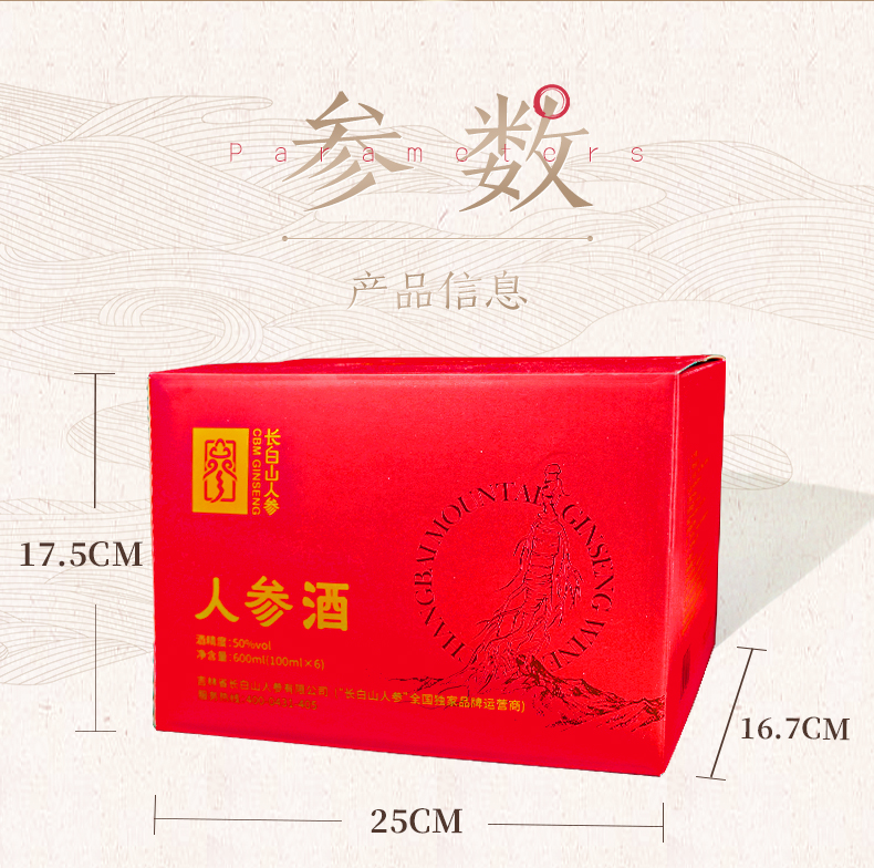 热销【人参酒】长白山人参酒100ml*6/箱