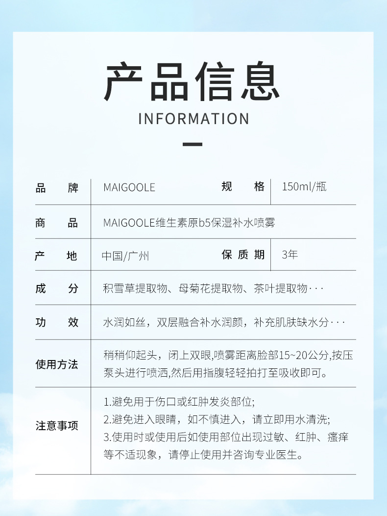 「拍1发3,29.9到手3瓶!拼团同款」玫黛琳维生素原b5保湿补水喷雾 滋润补水缓解干燥温和不刺激爽肤水美容护肤