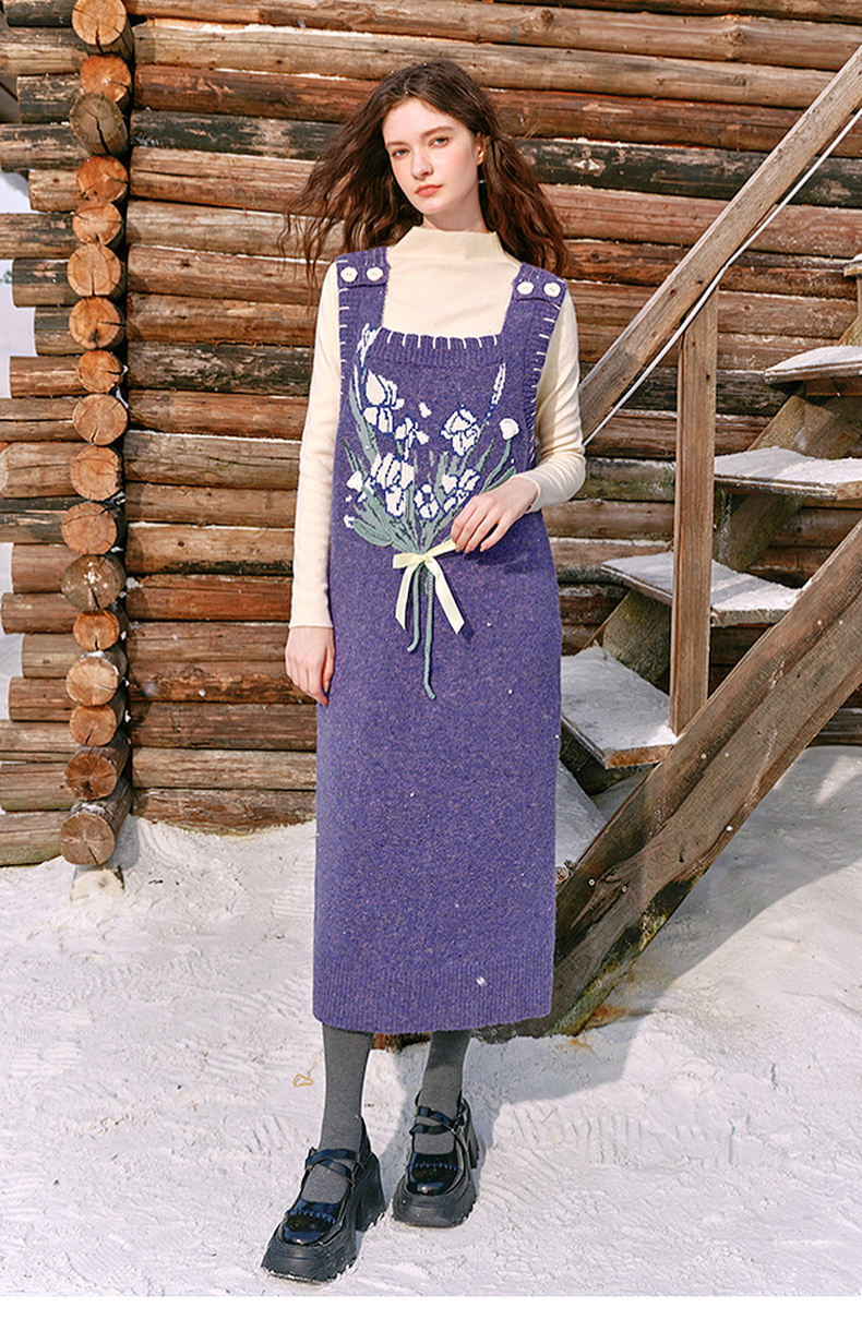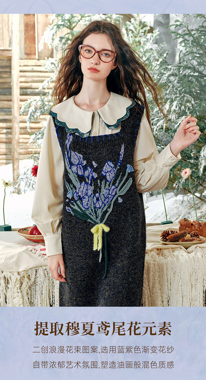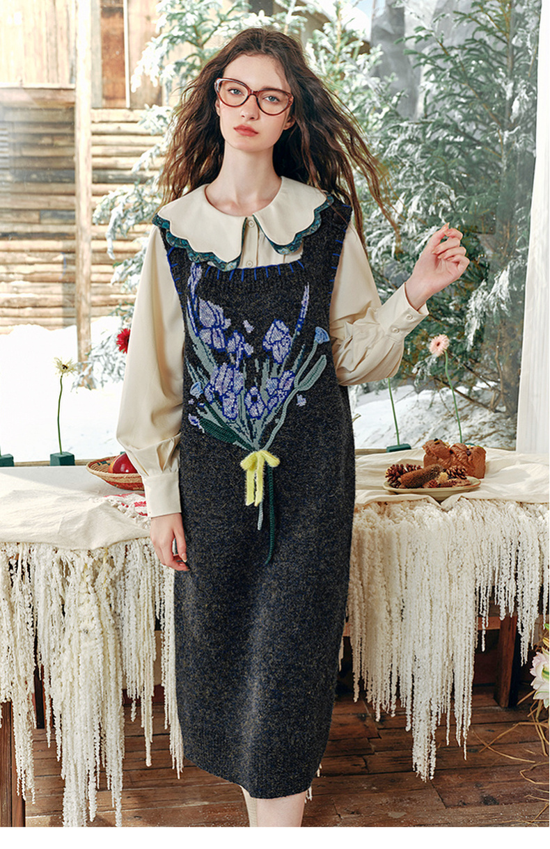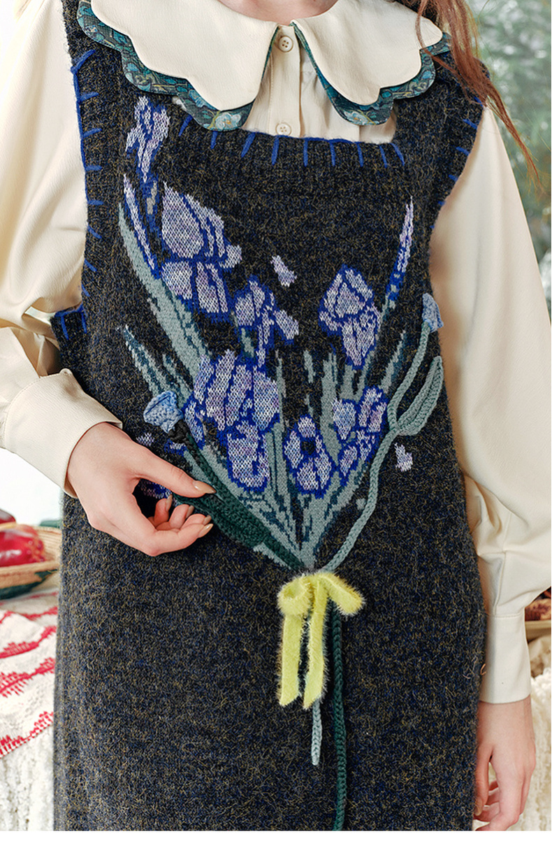 两三事绮丽随行2024冬新款立体鸢尾花蝴蝶结无袖背心裙毛衣连衣裙