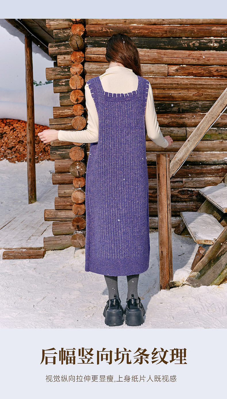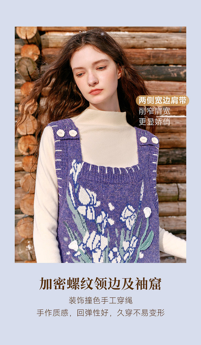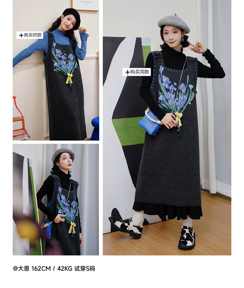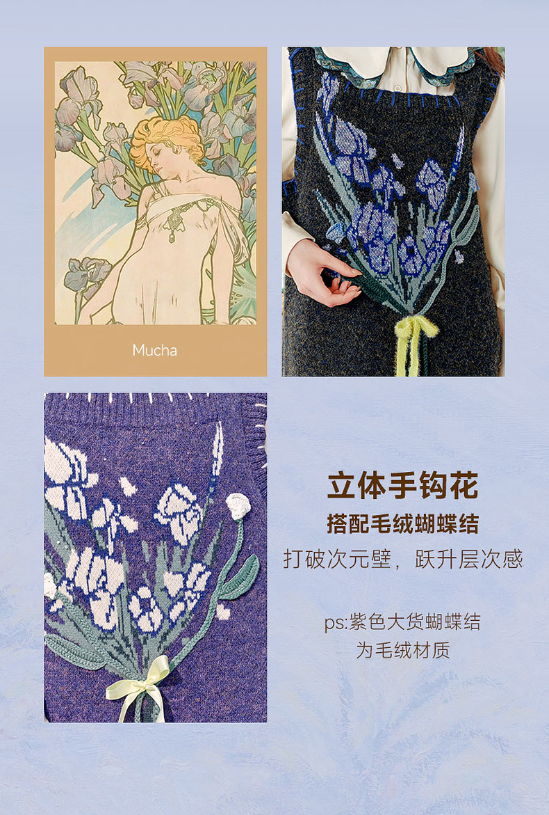 两三事绮丽随行2024冬新款立体鸢尾花蝴蝶结无袖背心裙毛衣连衣裙