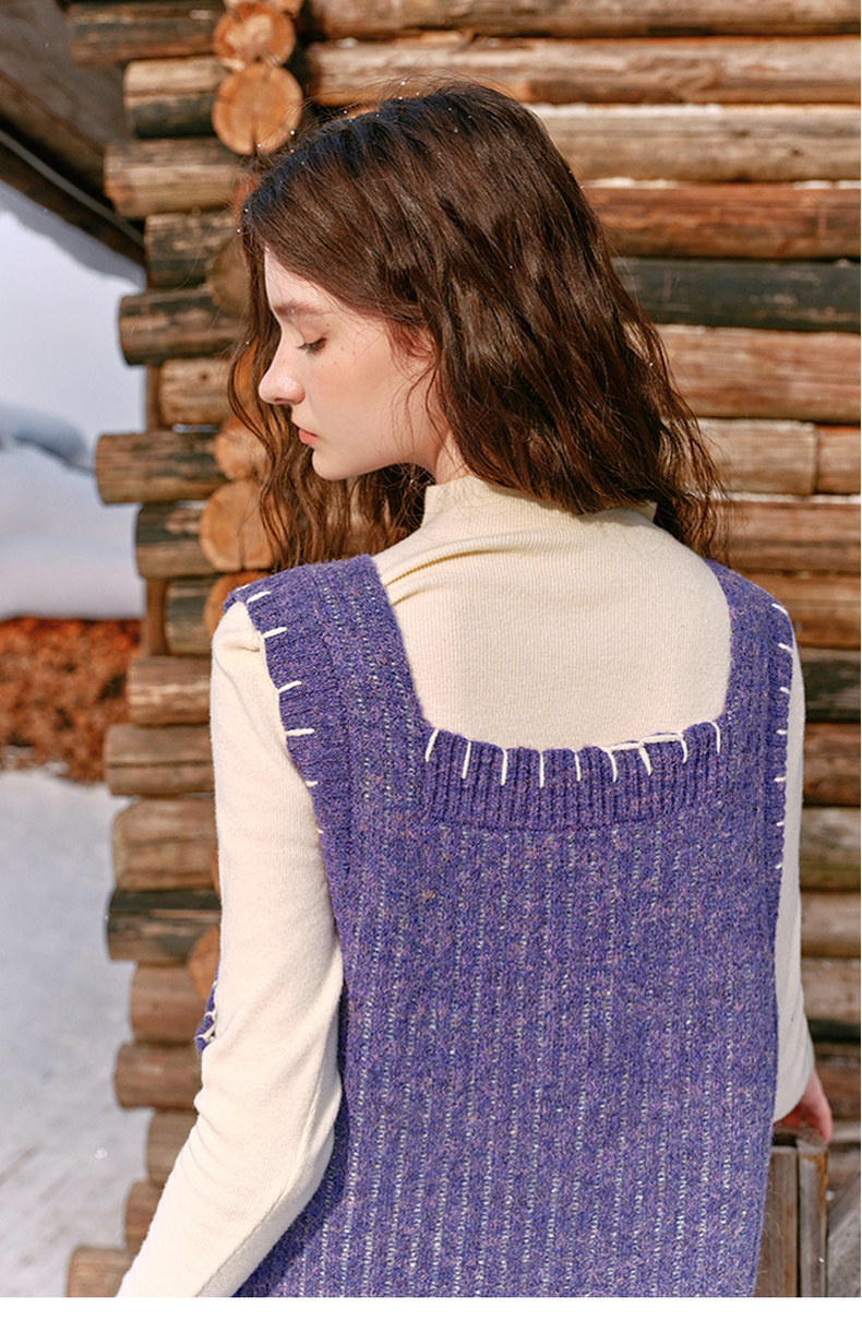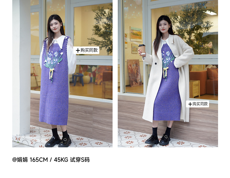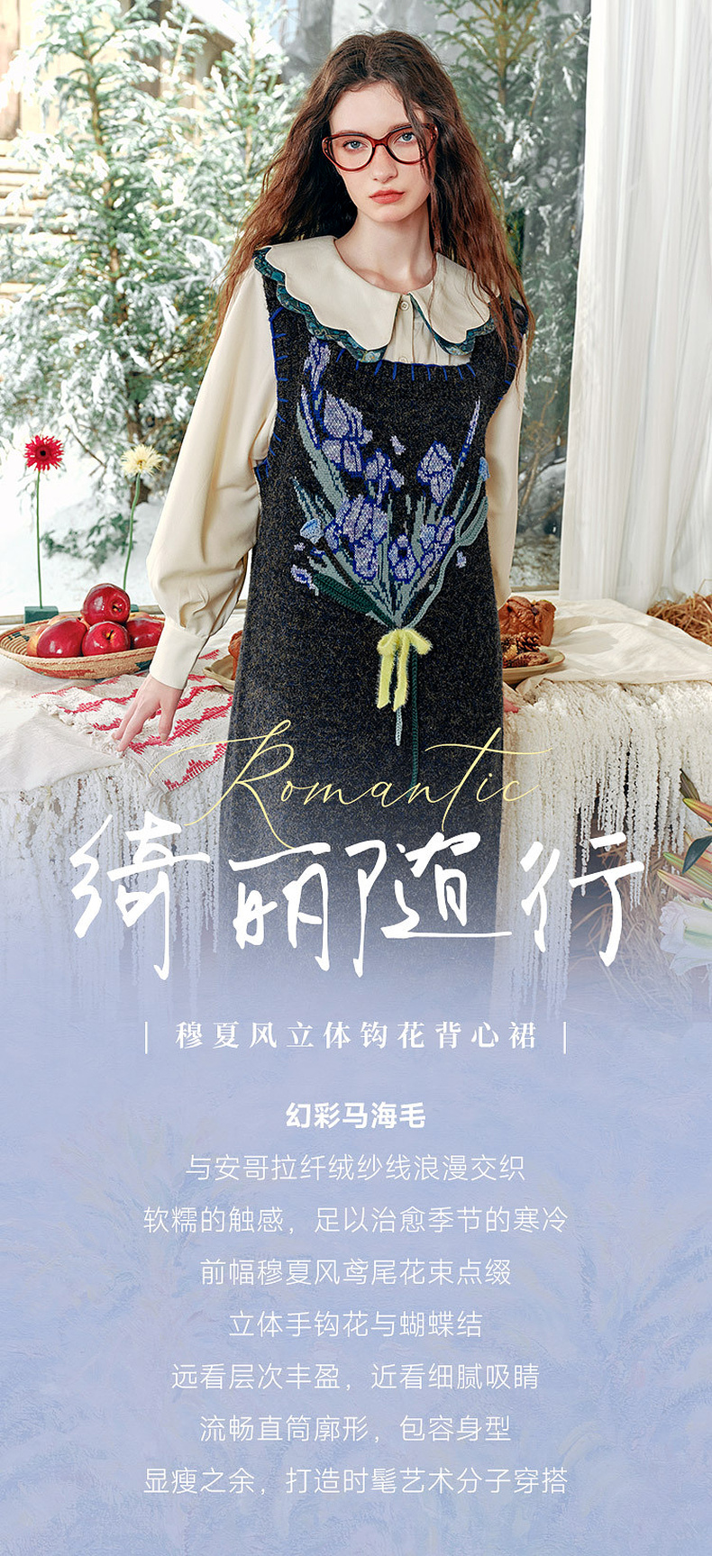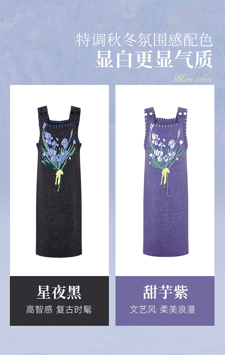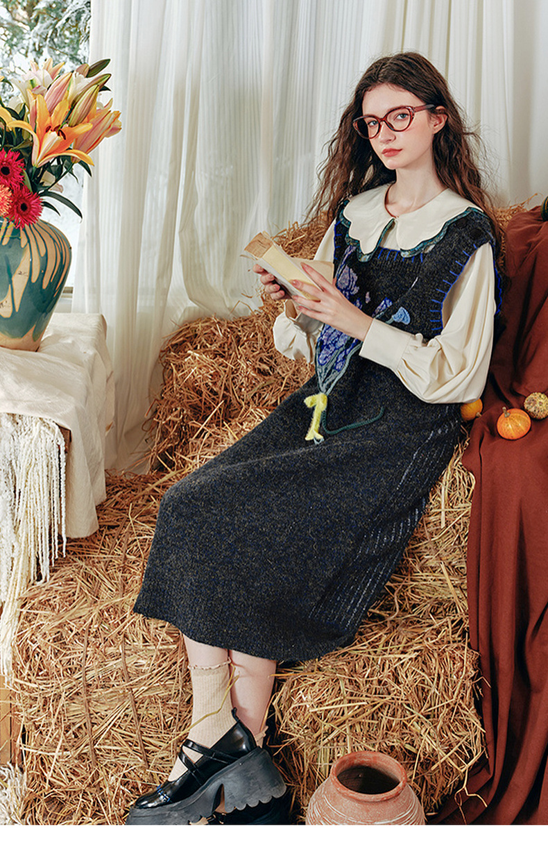 两三事绮丽随行2024冬新款立体鸢尾花蝴蝶结无袖背心裙毛衣连衣裙