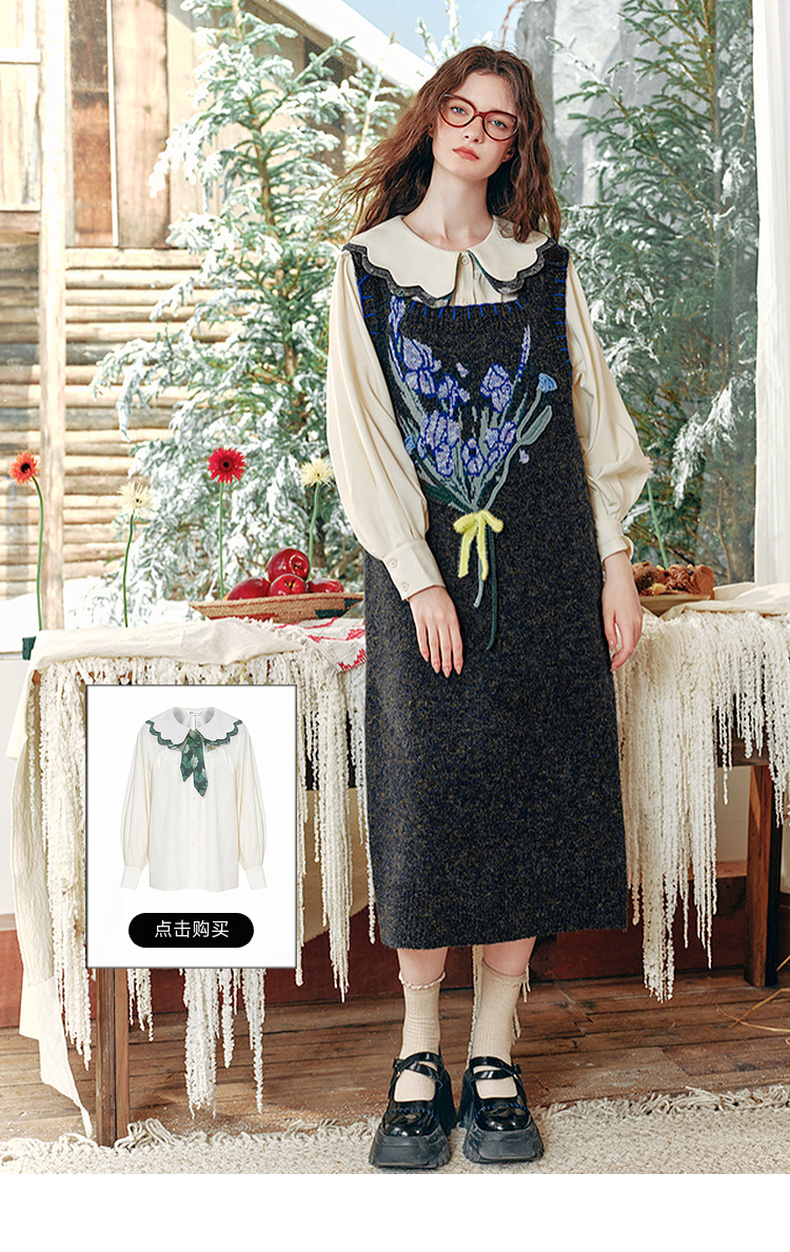 【暖冬内购】两三事梵高文艺 向阳微光 2024冬季新款复古绣花海军领毛呢外套女