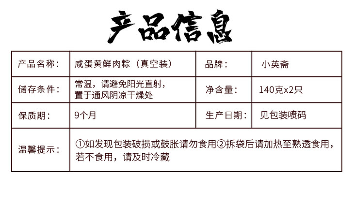 【粽子节】小英斋嘉兴老字号粽子蛋黄肉粽大肉粽豆沙粽端午送礼【140g*2个/包】
